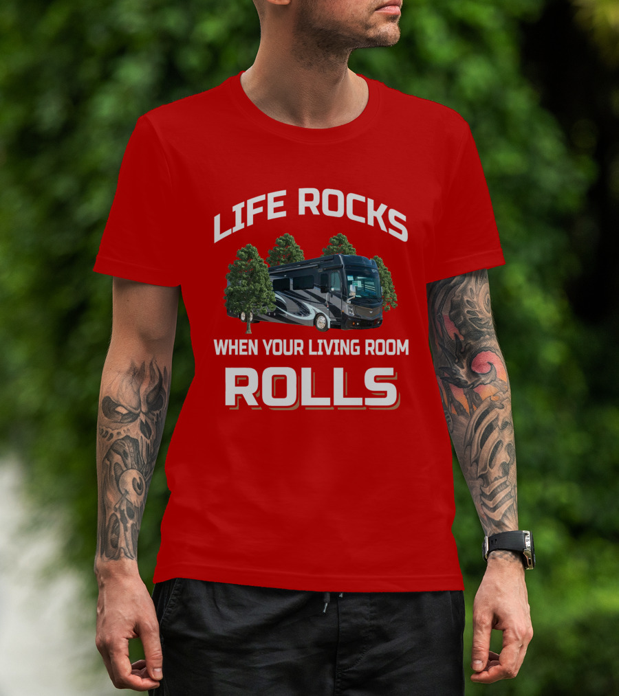 LIFE ROCKS WHEN YOUR LIVING ROOM ROLLS Fleetwood Discovery T-Shirt