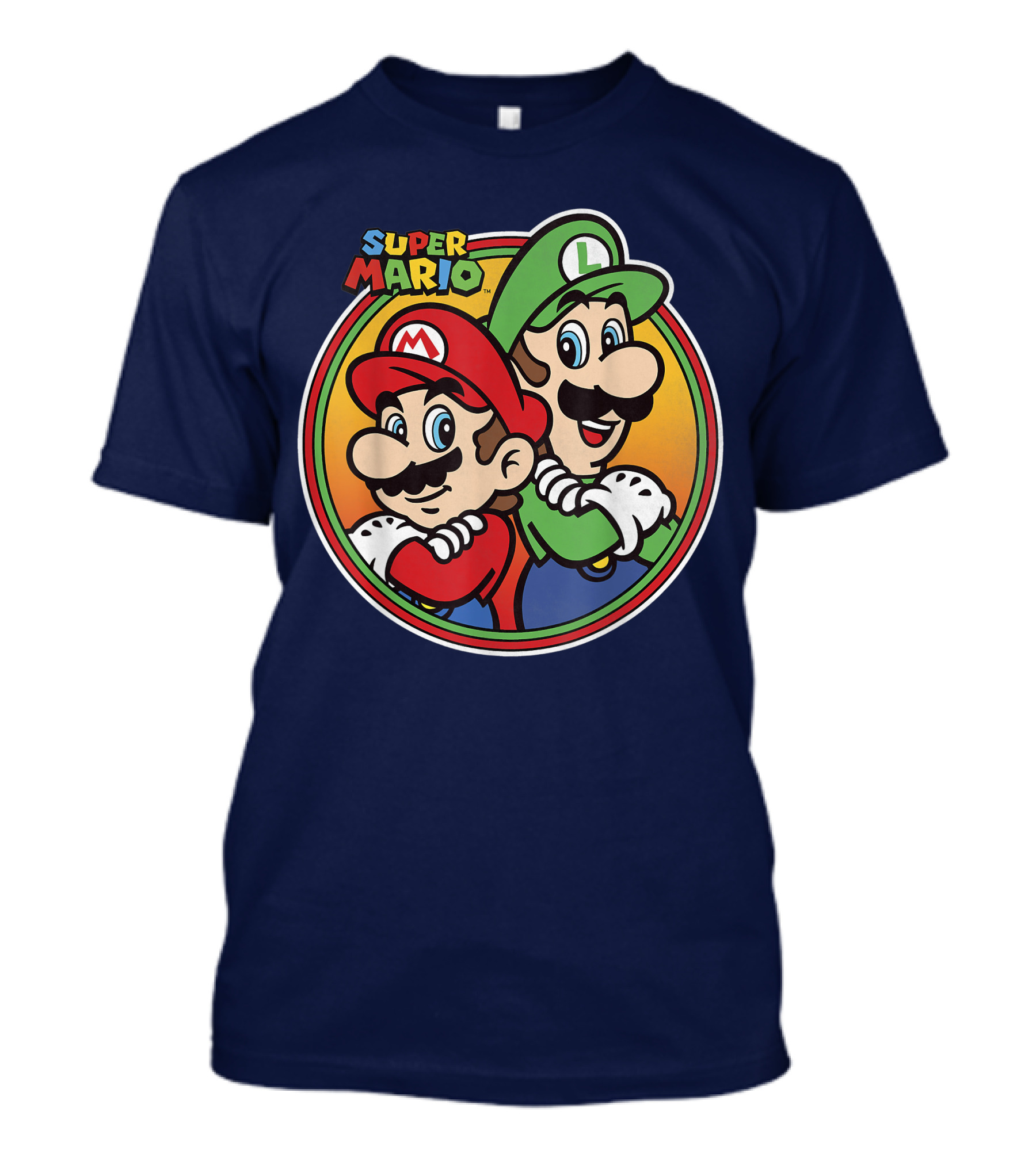 The Super Mario and Luigi Brothers Dynamic Circle Duo T-shirt is designed for everyday wear and a consistent fit. Fabric is pre-shrunk ring-spun cotton with durable stitching. See the size chart below for exact measurements.
