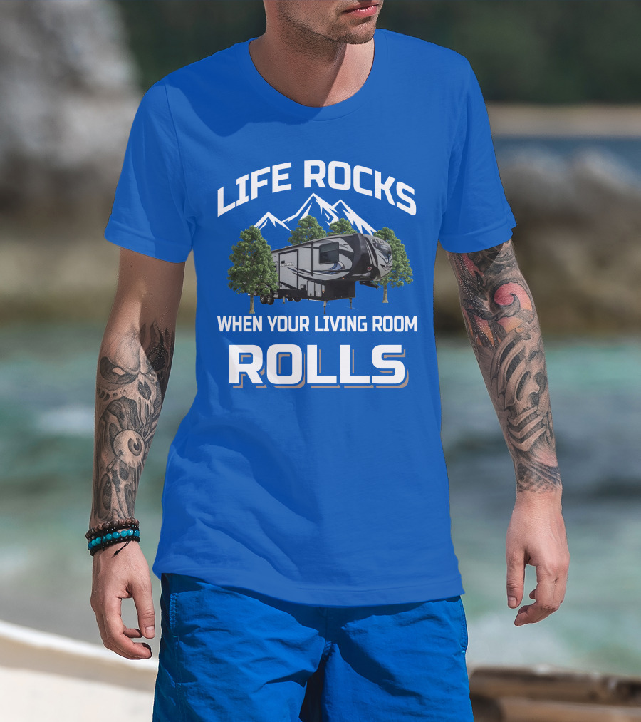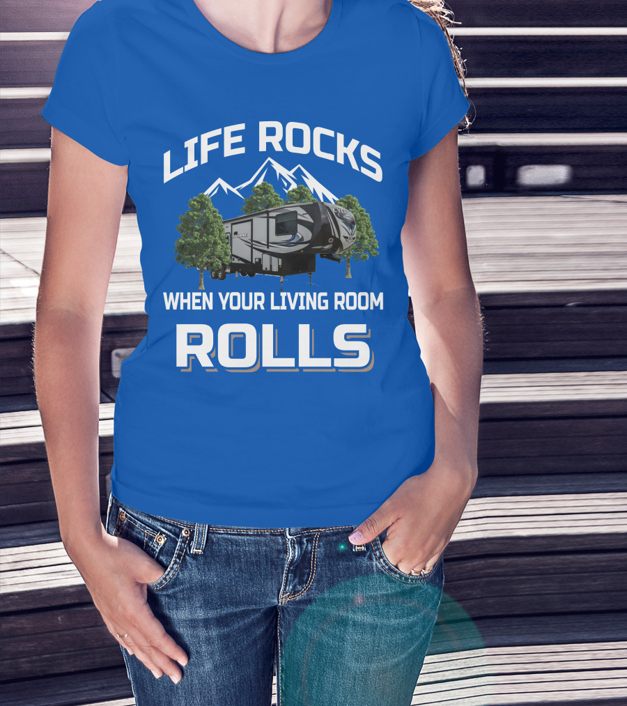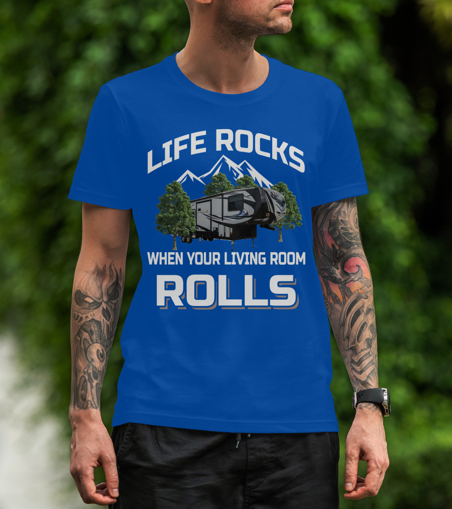 The LIFE ROCKS WHEN YOUR LIVING ROOM ROLLS HEARTLAND CYCLONE T-shirt is designed for everyday wear and a consistent fit. Fabric is pre-shrunk ring-spun cotton with durable stitching. See the size chart below for exact measurements.