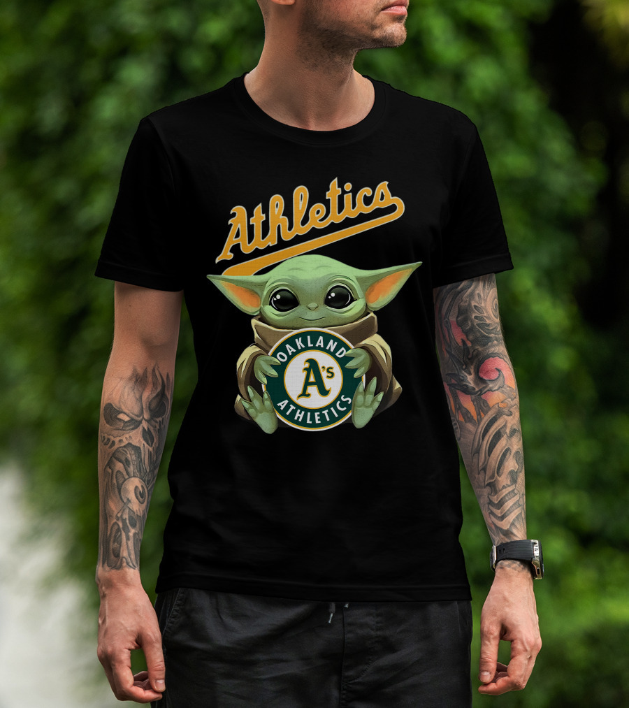 Oakland Athletics Baby Yoda Hugging A's Baseball T-Shirt