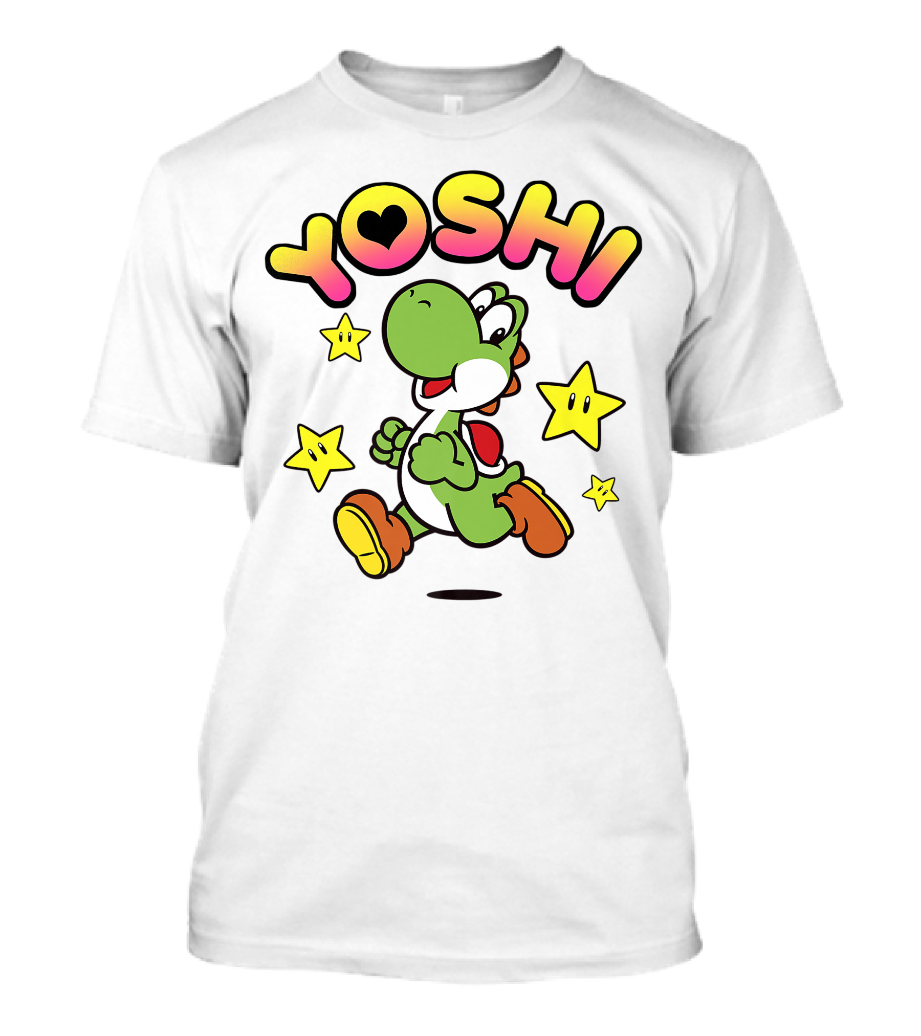The Funny Yoshi Super Mario Star Power Spirit T-shirt is designed for everyday wear and a consistent fit. Fabric is pre-shrunk ring-spun cotton with durable stitching. See the size chart below for exact measurements.