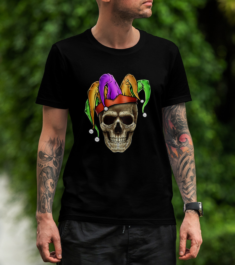 Mardi Gras Skull Jester Joker Louisiana Cajun T-Shirt