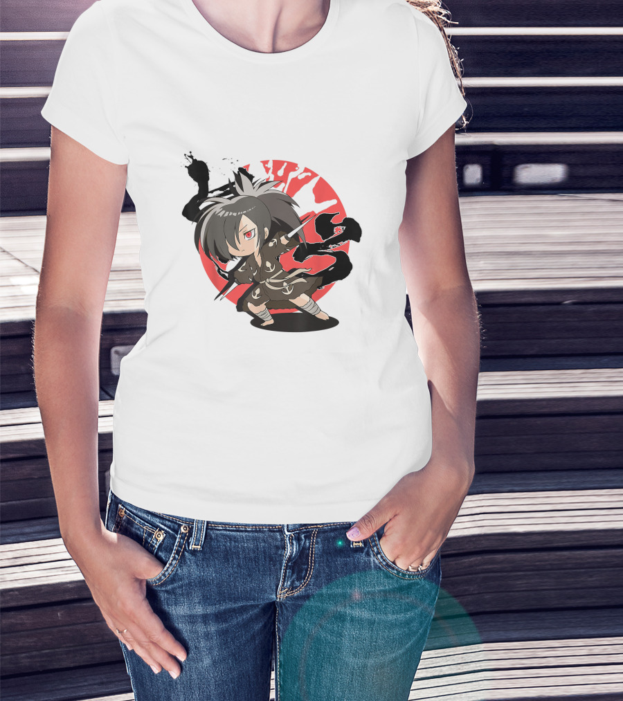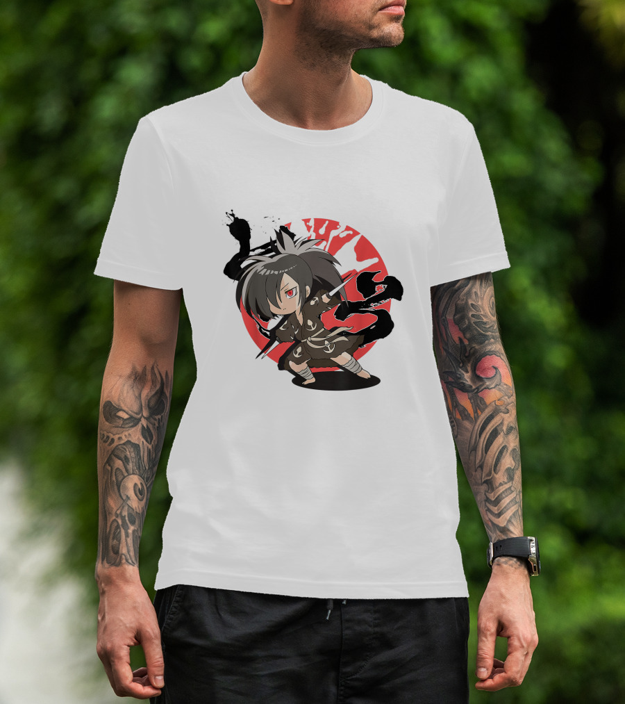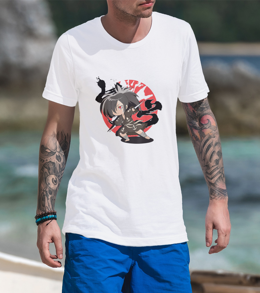 Dororo Hyakkimaru Chibi Samurai Red Sunburst Anime T-Shirt