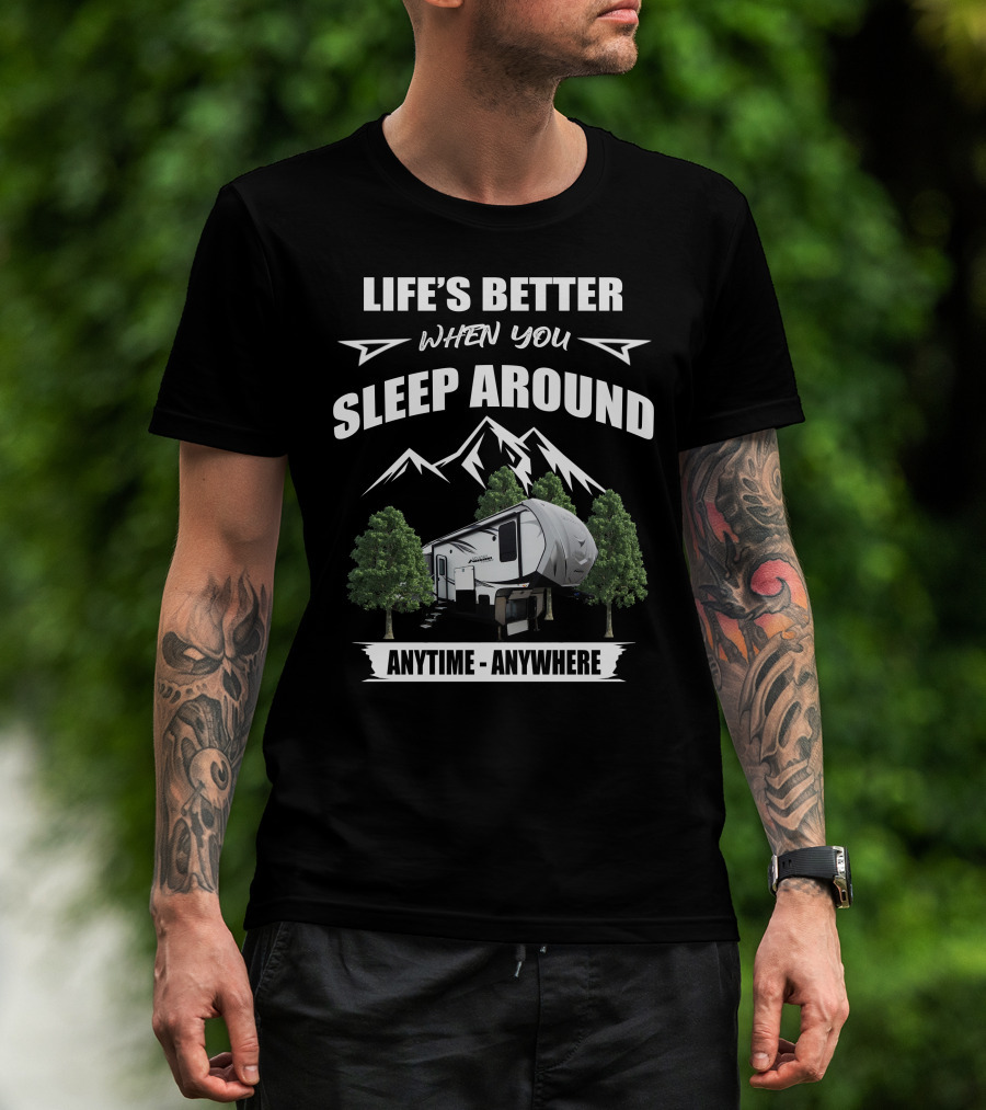 LIFE'S BETTER WHEN YOU SLEEP AROUND ANYTIME ANYWHERE OUTDOORS RV T-Shirt