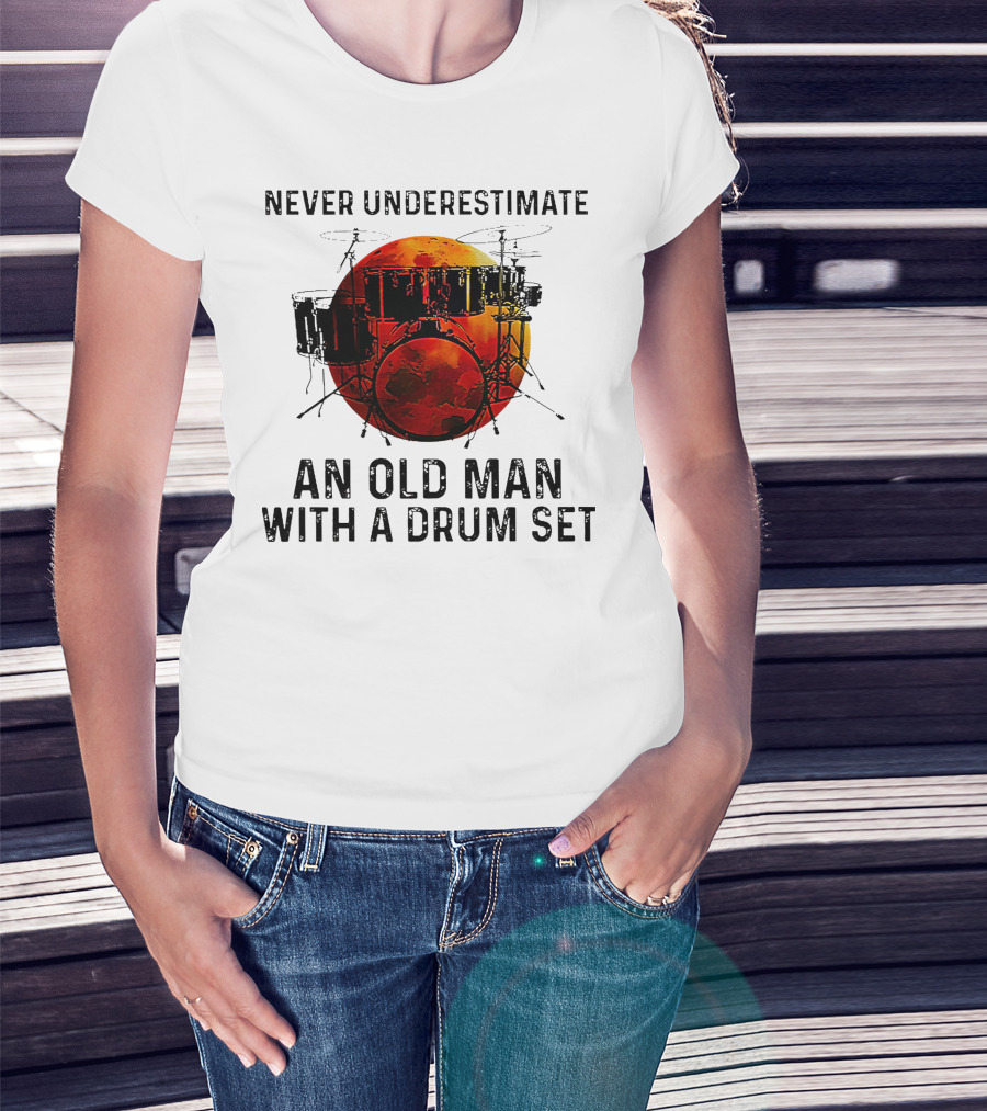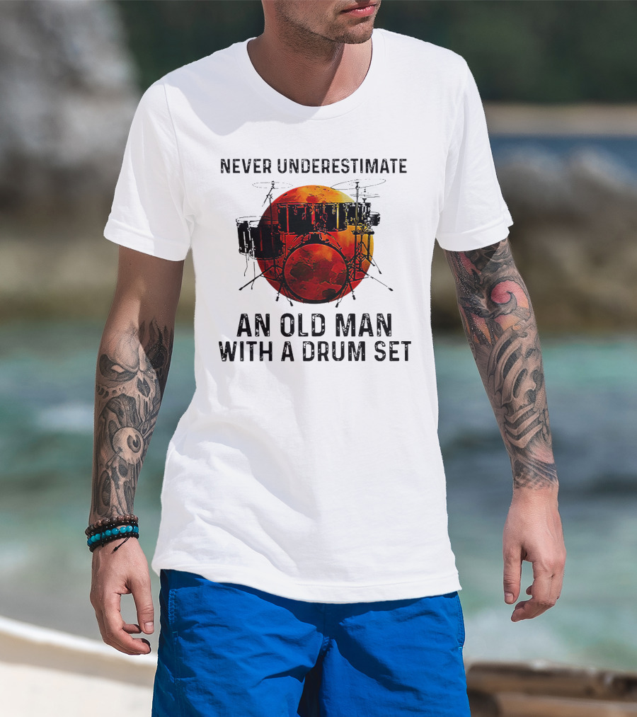 Never Underestimate An Old Man With A Drum Set Blood Moon T-Shirt