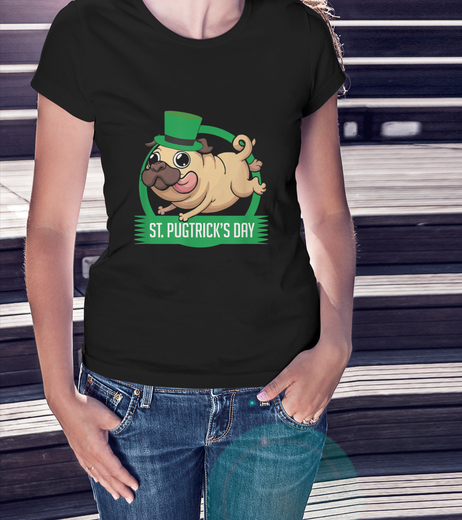 St. Pugtrick's Day Funny Dog With Green Hat T-Shirt