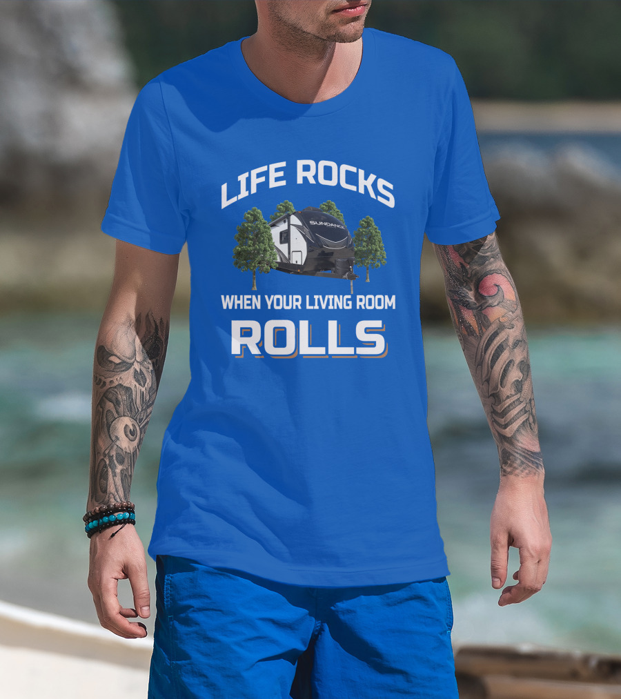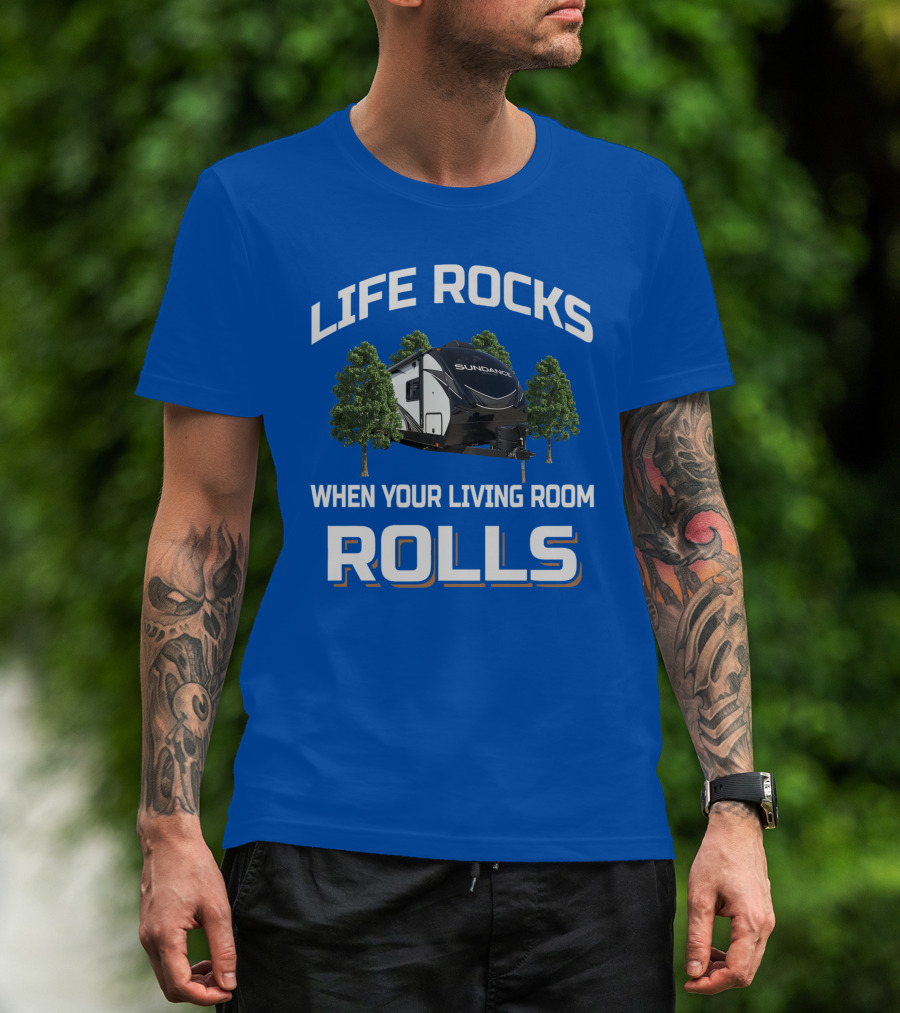 LIFE ROCKS WHEN YOUR LIVING ROOM ROLLS SUN DANCE RV CAMPER T-Shirt
