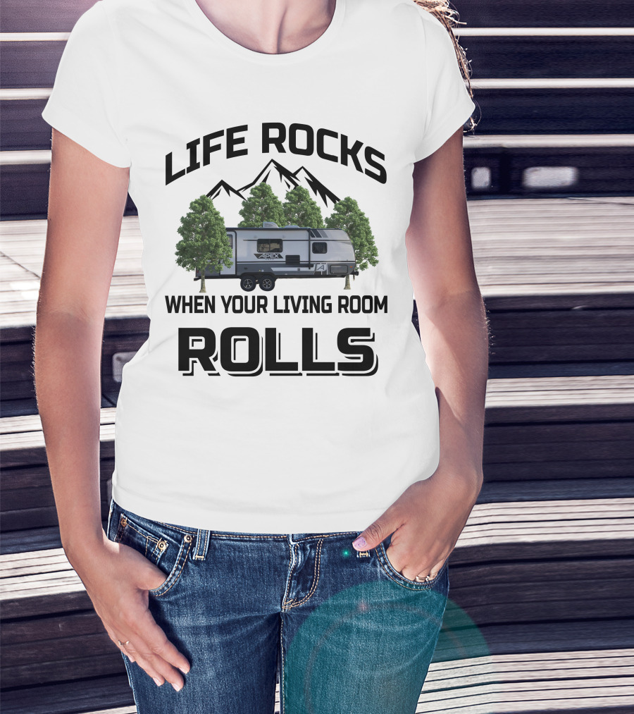 LIFE ROCKS WHEN YOUR LIVING ROOM ROLLS Coachmen RV APEX Mountain Trees T-Shirt