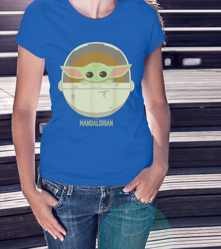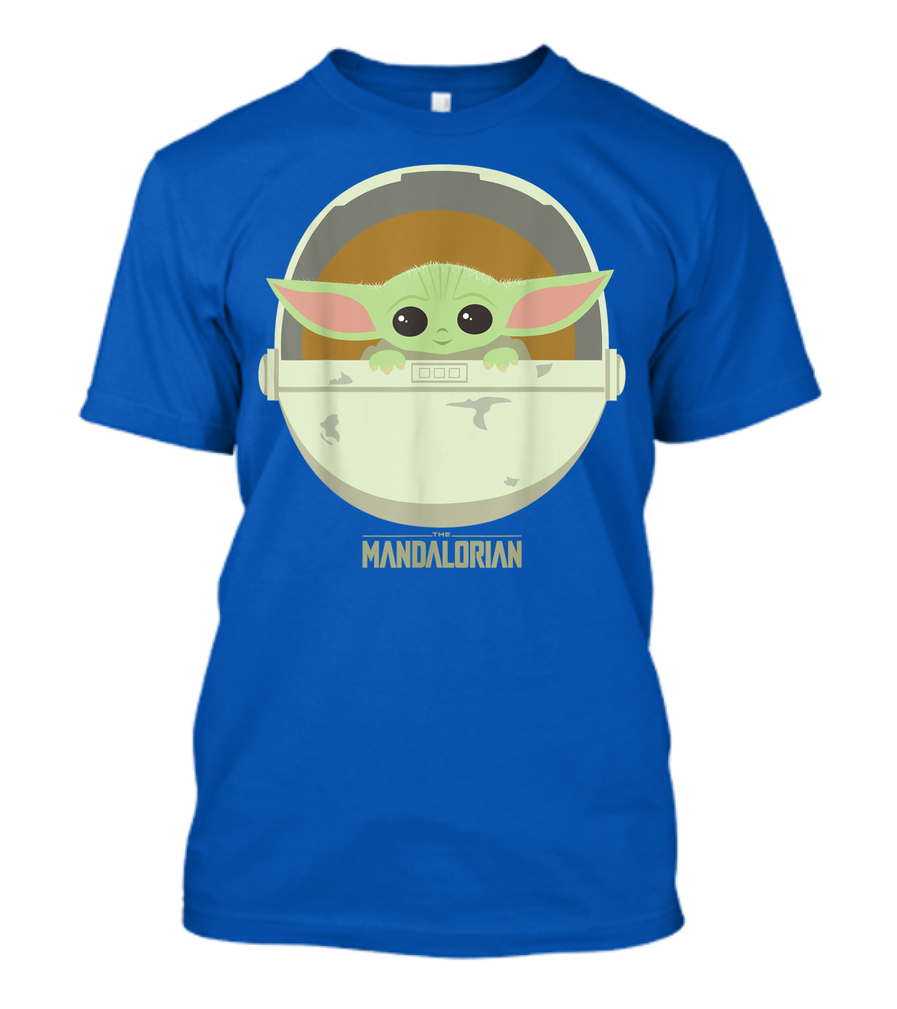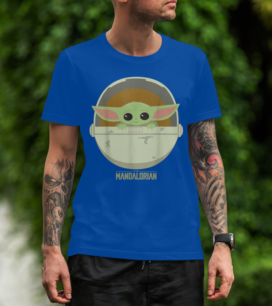 The Star Wars The Mandalorian The Child In Bassinet Iconic Blue Background T-shirt is designed for everyday wear and a consistent fit. Fabric is pre-shrunk ring-spun cotton with durable stitching. See the size chart below for exact measurements.