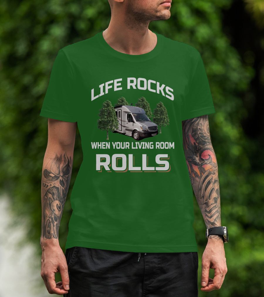 LIFE ROCKS WHEN YOUR LIVING ROOM ROLLS Camper Van Adventure T-Shirt