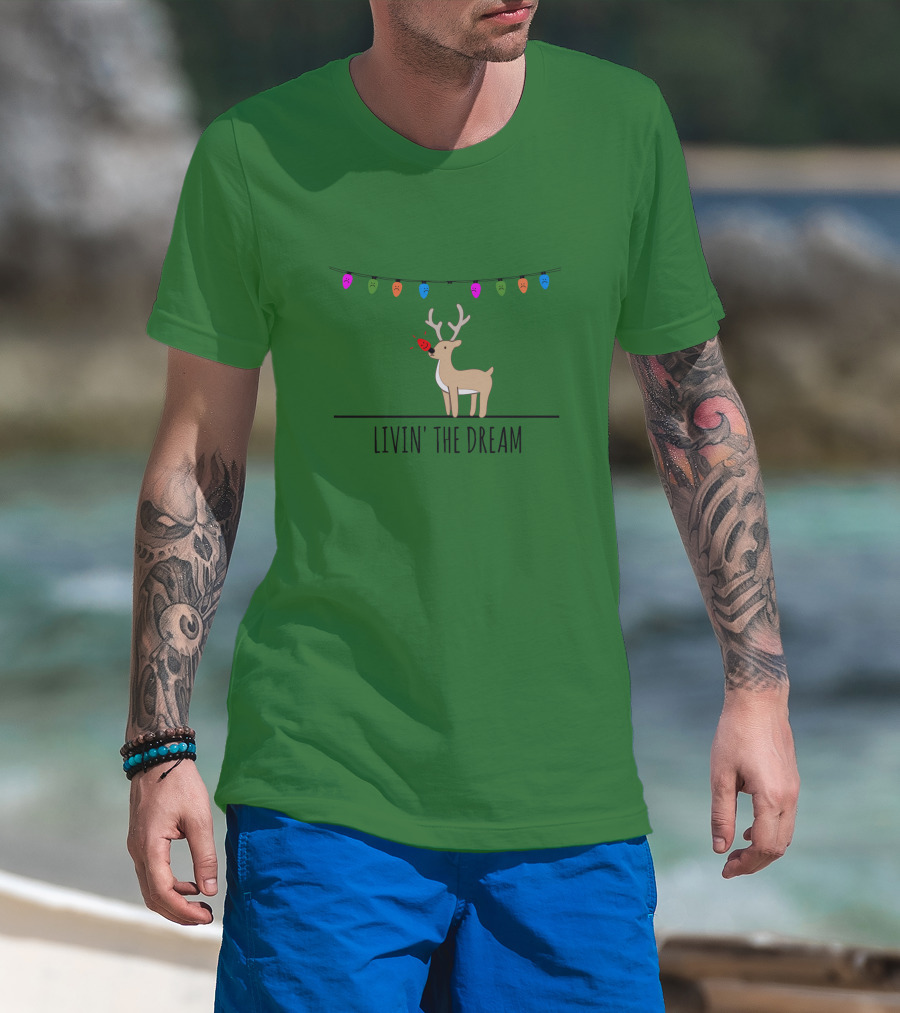 Livin' The Dream Rudolph Christmas Lights Reindeer Scene T-Shirt