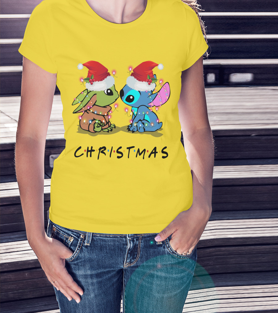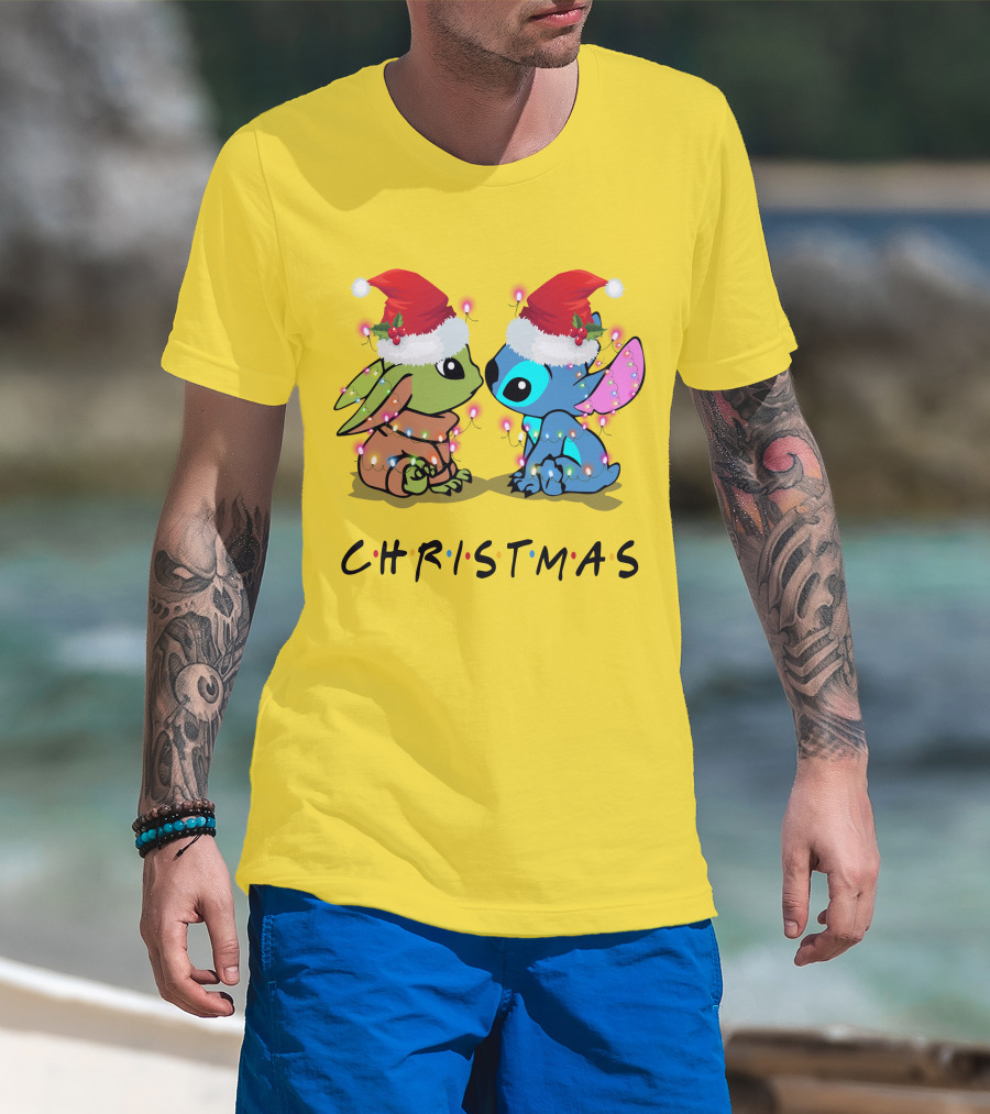 Christmas Yoda And Stitch Santa Hats T-Shirt