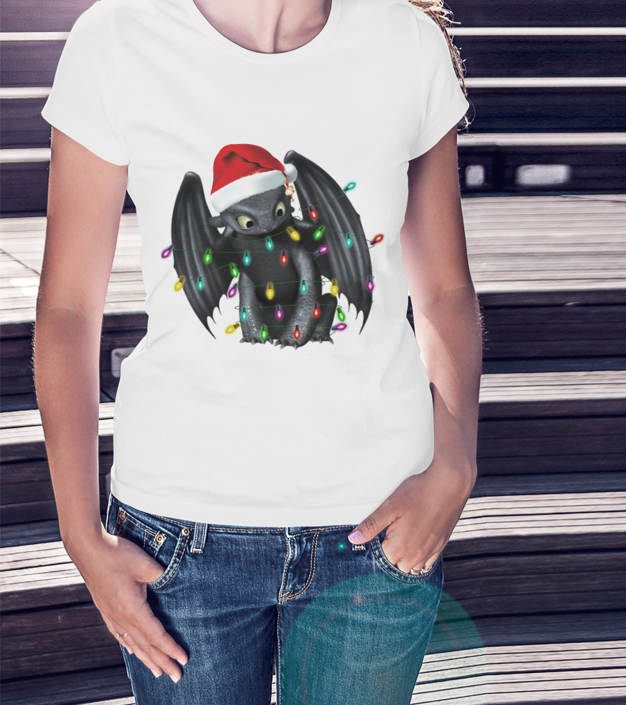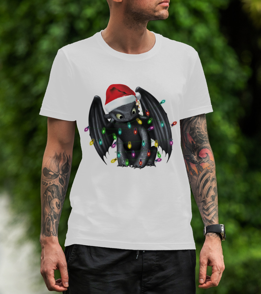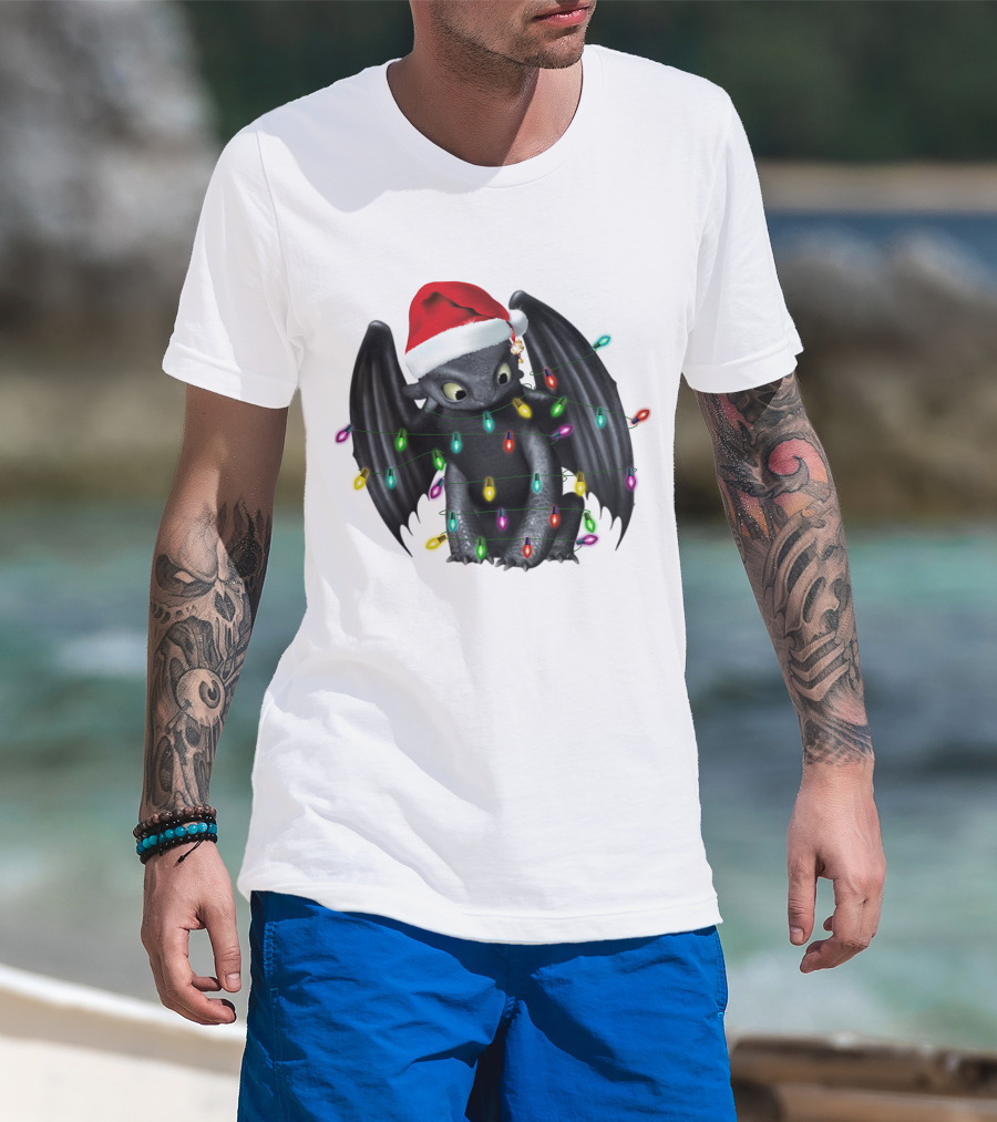 How To Train Your Dragon ZN 297 Toothless Christmas Lights Santa Hat T-Shirt