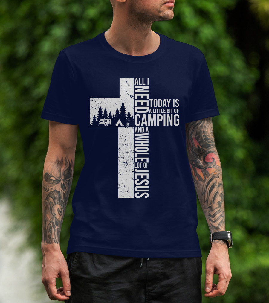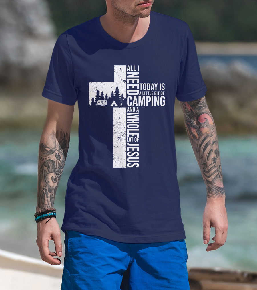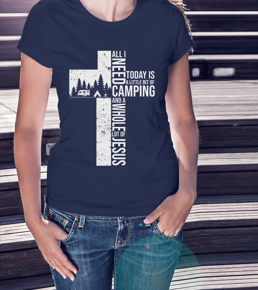 All I Need Today Is A Little Bit Of Camping And A Whole Lot Of Jesus Cross With Camper And Tent T-Shirt