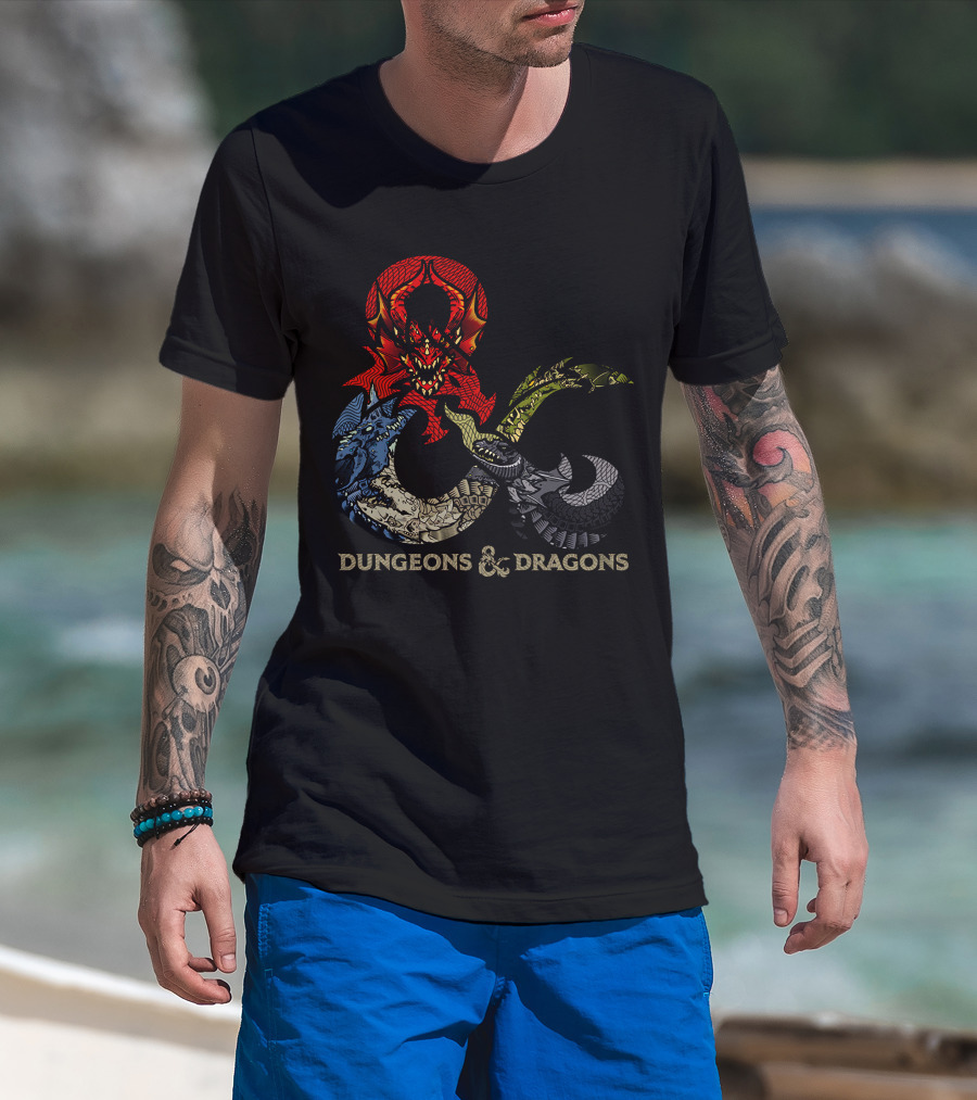 Dungeons And Dragons Ampersand With Multi-Colored Dragons T-Shirt