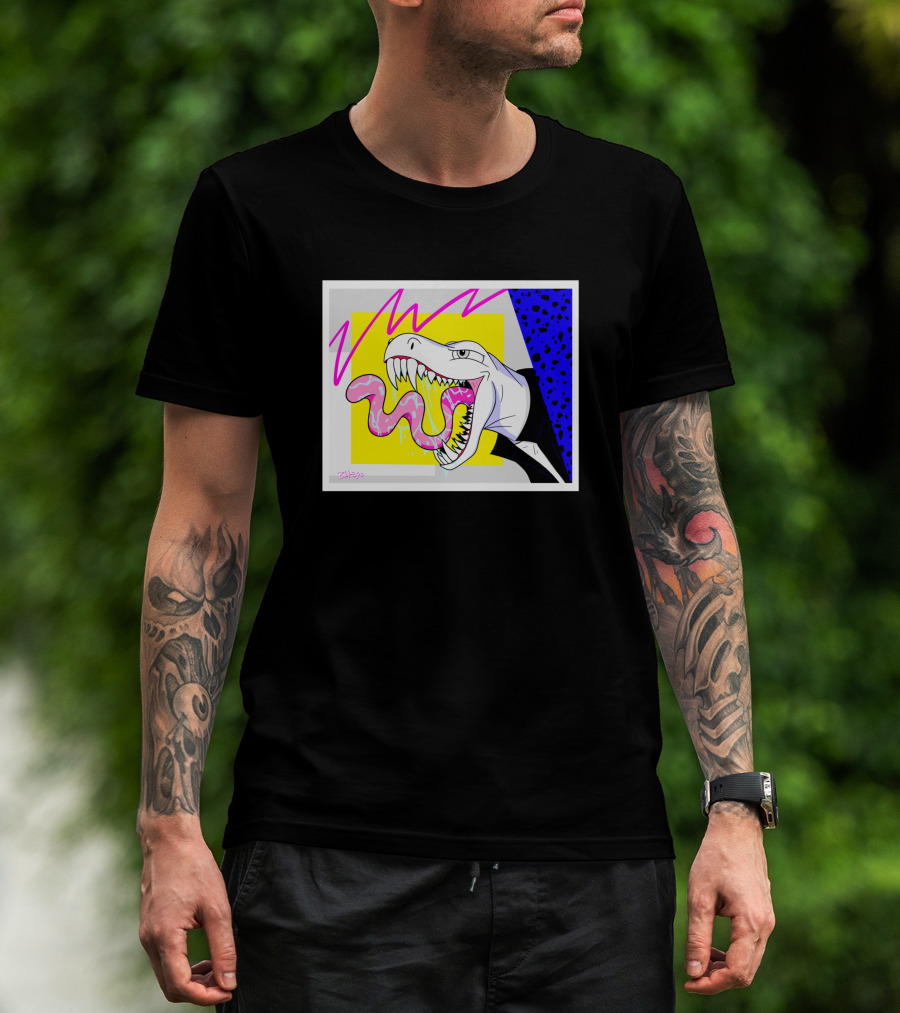 The '80's Babe Neon Dinosaur Art' T-shirt is designed for everyday wear and a consistent fit. Fabric is pre-shrunk ring-spun cotton with durable stitching. See the size chart below for exact measurements.
