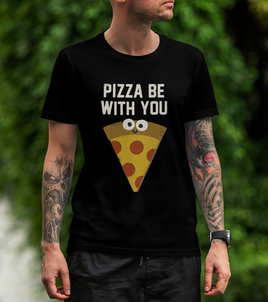 The Pizza Be With You A Pieous Hope T-shirt is designed for everyday wear and a consistent fit. Fabric is pre-shrunk ring-spun cotton with durable stitching. See the size chart below for exact measurements.