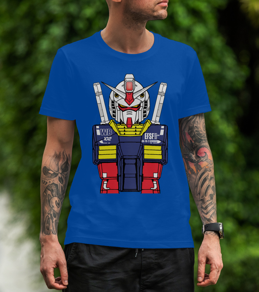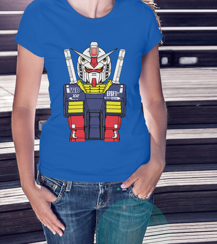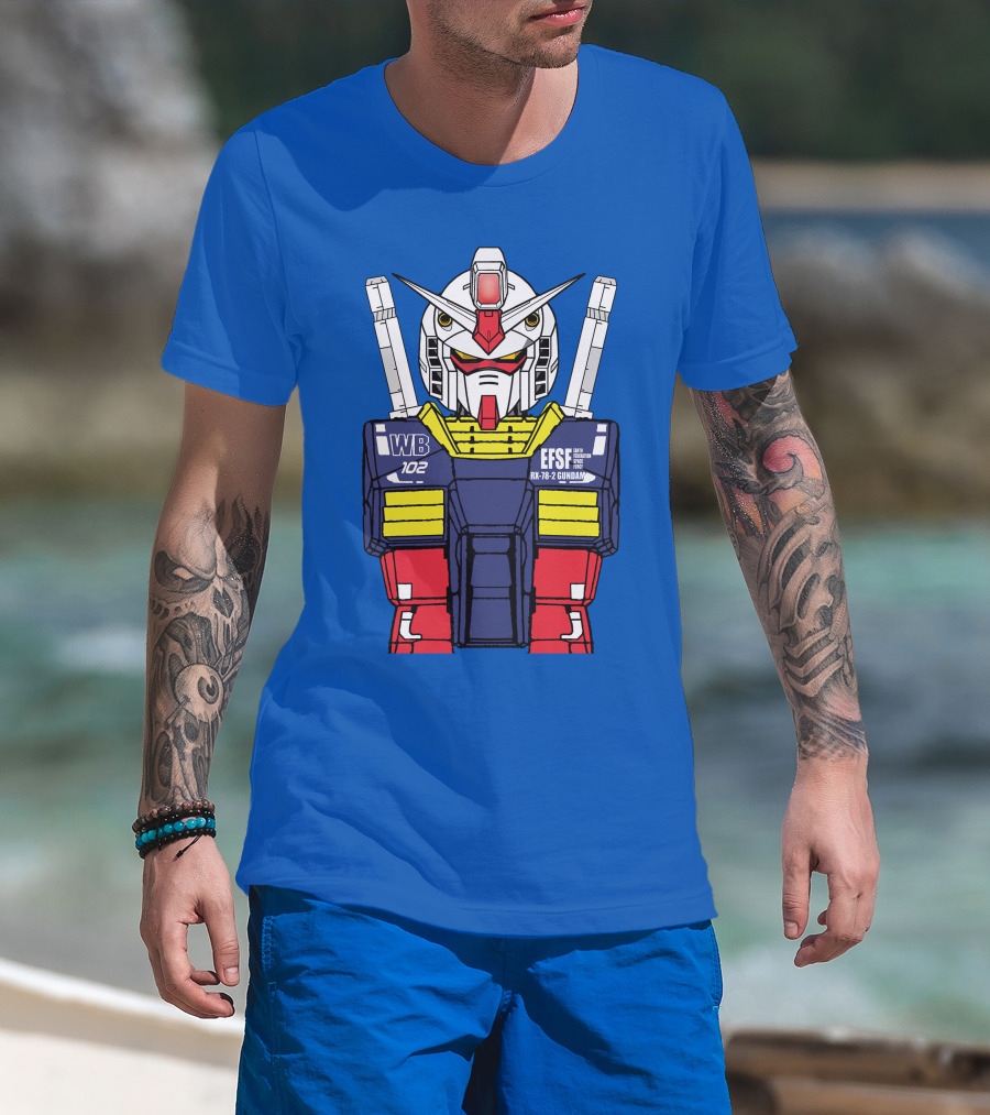 The WB EFSF RX-78-2 Gundam 102 T-shirt is designed for everyday wear and a consistent fit. Fabric is pre-shrunk ring-spun cotton with durable stitching. See the size chart below for exact measurements.
