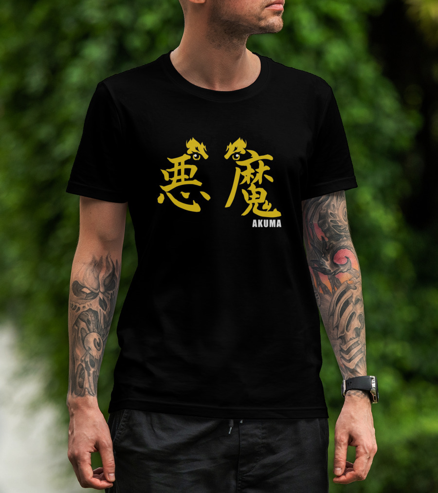 The Akuma Yellow Characters with Eyes T-shirt is designed for everyday wear and a consistent fit. Fabric is pre-shrunk ring-spun cotton with durable stitching. See the size chart below for exact measurements.