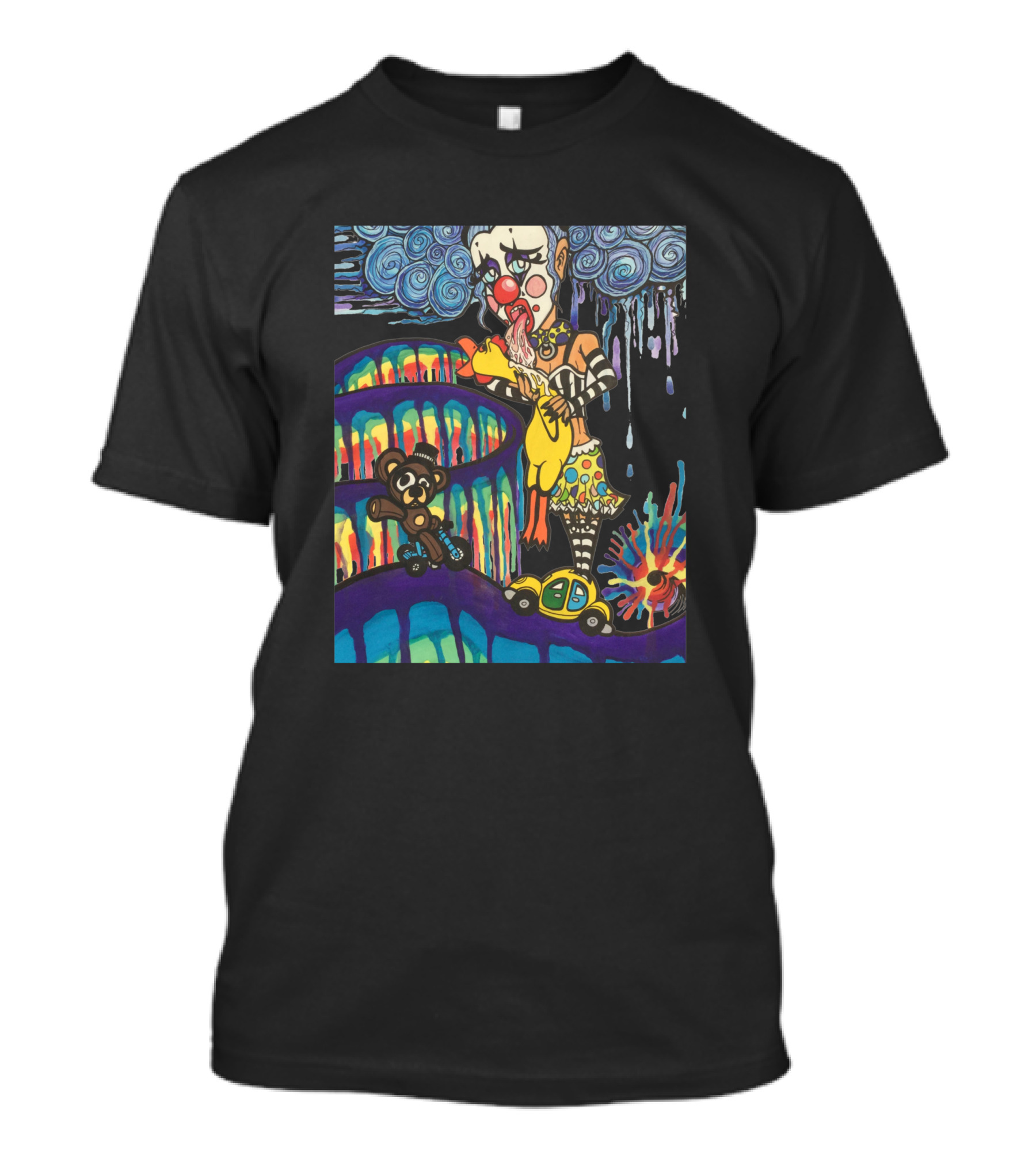 The Always Use A Rubber Clown Teddy Bear Car Spiral Colorful 705458 T-shirt is designed for everyday wear and a consistent fit. Fabric is pre-shrunk ring-spun cotton with durable stitching. See the size chart below for exact measurements.