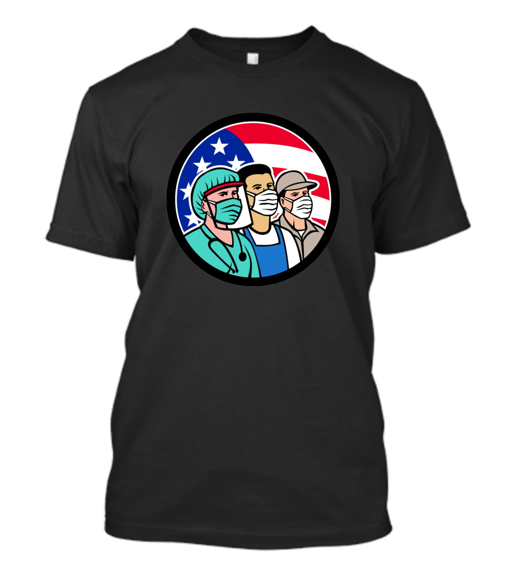 The American Frontline Heroes with Stars and Stripes背景 T-shirt is designed for everyday wear and a consistent fit. Fabric is pre-shrunk ring-spun cotton with durable stitching. See the size chart below for exact measurements.