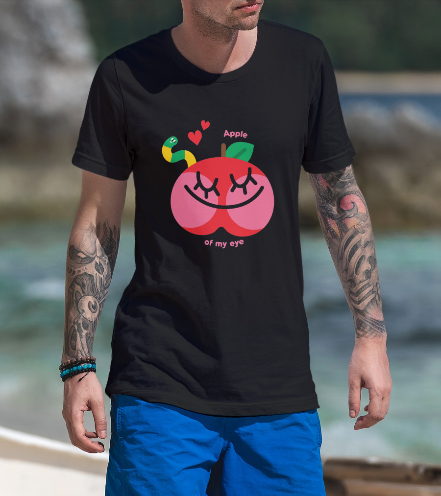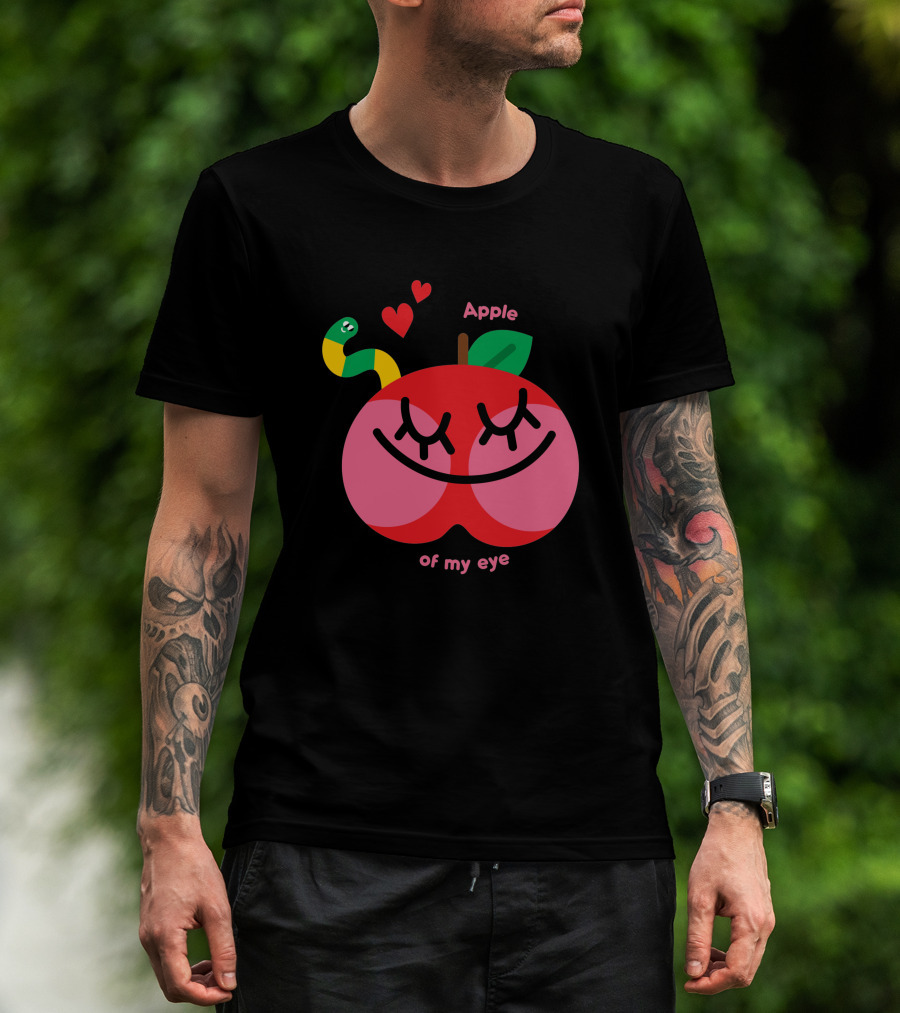 The Apple Of My Eye Cute Smiling Apple with Colorful Snake and Hearts T-shirt is designed for everyday wear and a consistent fit. Fabric is pre-shrunk ring-spun cotton with durable stitching. See the size chart below for exact measurements.