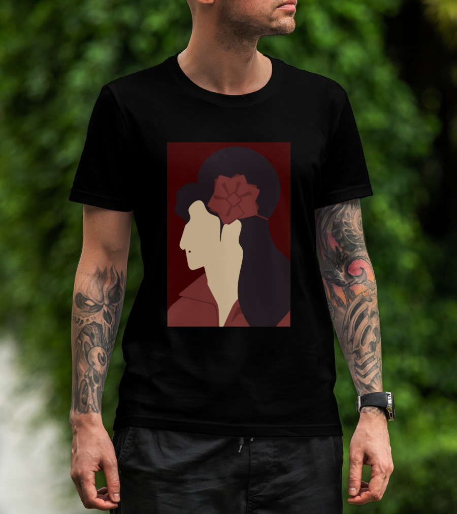 Amy Winehouse Minimalist Art Profile With Red Flower 1373543 T-Shirt
