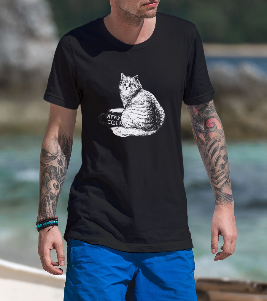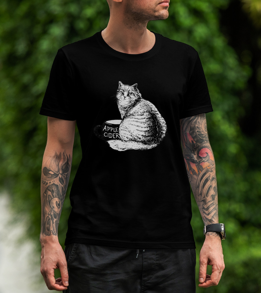 Apple Cider Cat Illustration Featuring Feline On Mug 1186326 T-Shirt