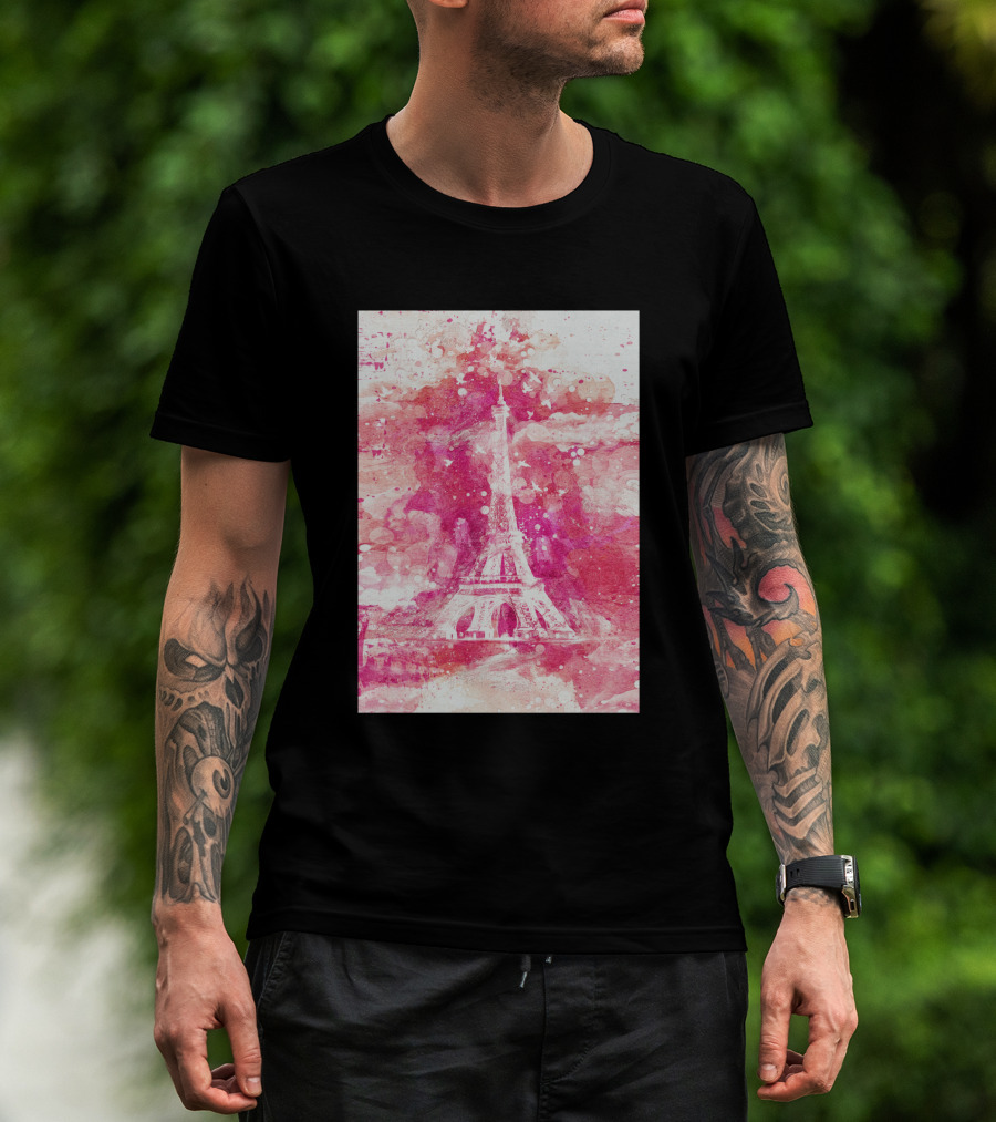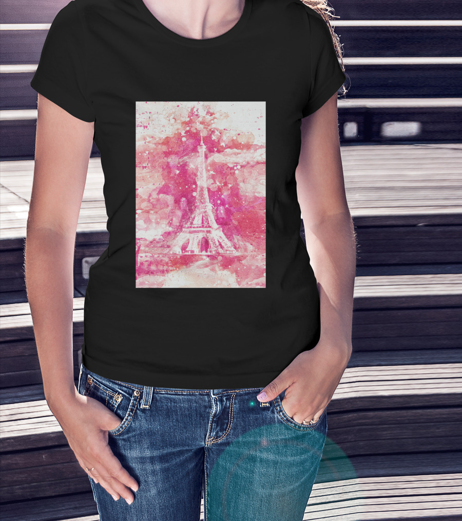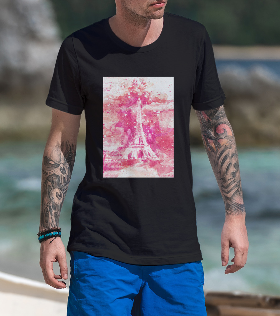 Artistic Xliv Eiffel Tower Paris 119278 Pink Splatter T-Shirt