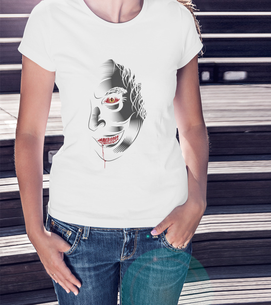 Aswang 1186733 Creepy Red-Eyed Smiling Face With Blood Drip T-Shirt