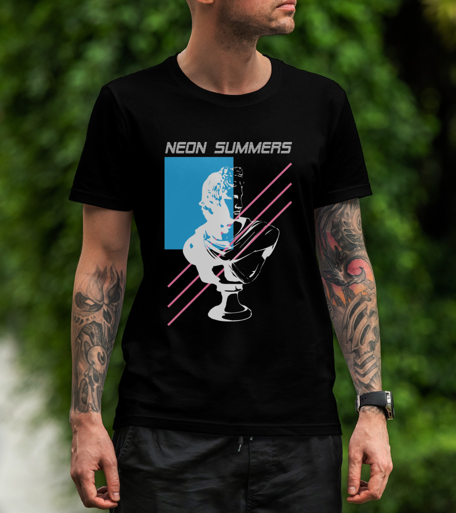 The Neon Summers Apollo Bust T-shirt is designed for everyday wear and a consistent fit. Fabric is pre-shrunk ring-spun cotton with durable stitching. See the size chart below for exact measurements.