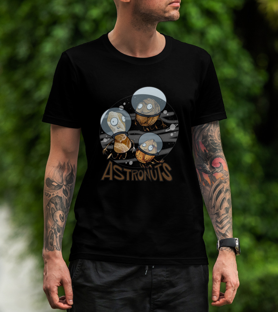 Astronuts 118341 Goofy Nuts In Space Helmets Floating In Outer Space T-Shirt