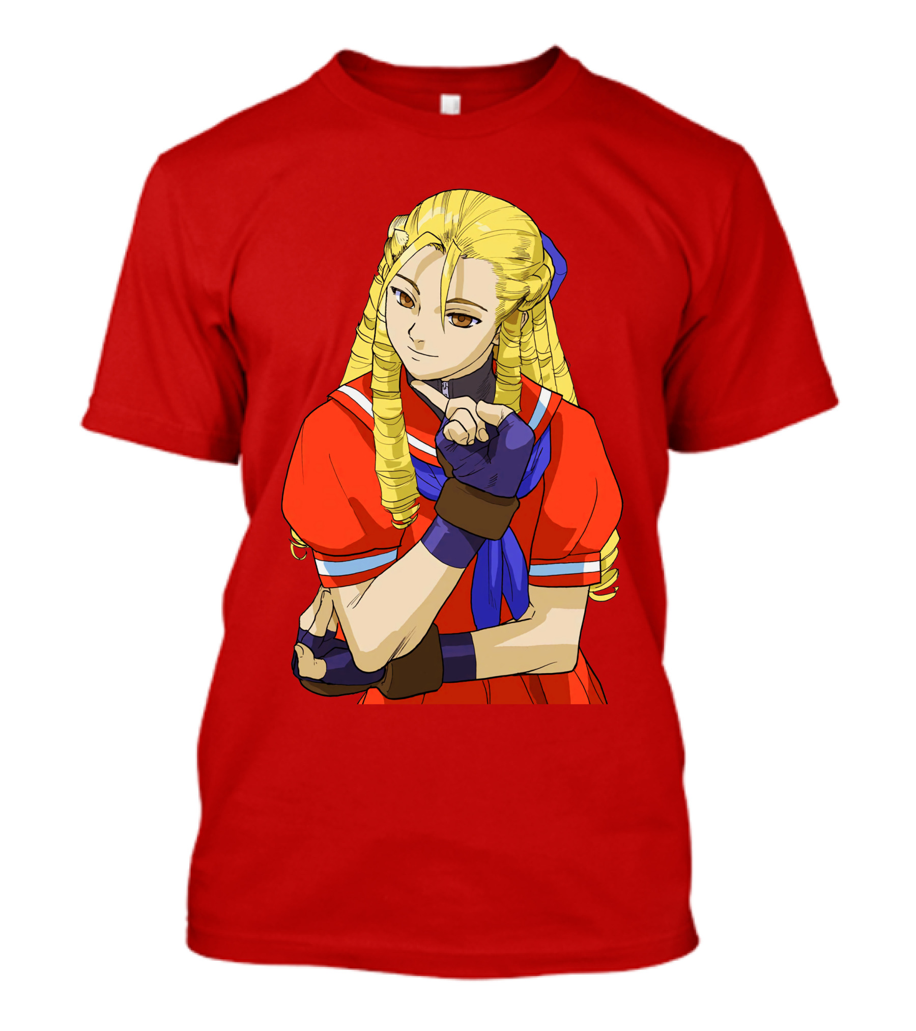 The Street Fighter Alpha Cammy Red Outfit Character T-shirt is designed for everyday wear and a consistent fit. Fabric is pre-shrunk ring-spun cotton with durable stitching. See the size chart below for exact measurements.