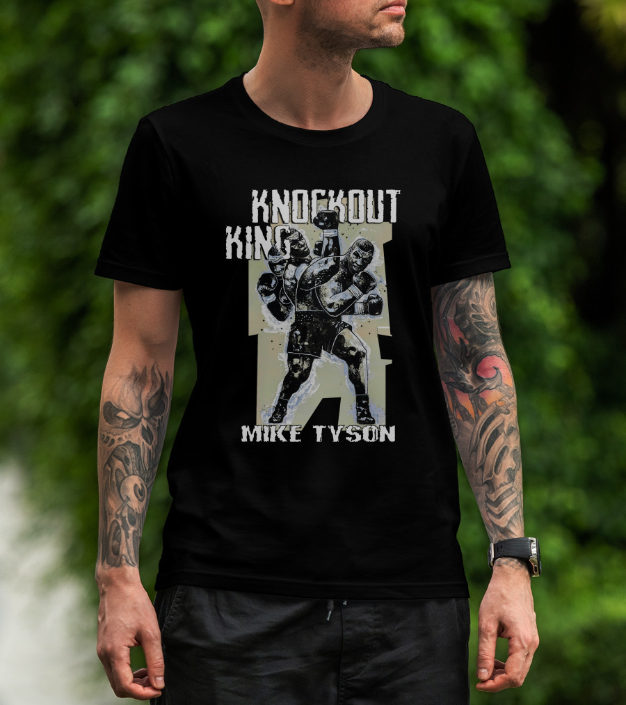 The Mike Tyson Knockout King T-shirt is designed for everyday wear and a consistent fit. Fabric is pre-shrunk ring-spun cotton with durable stitching. See the size chart below for exact measurements.