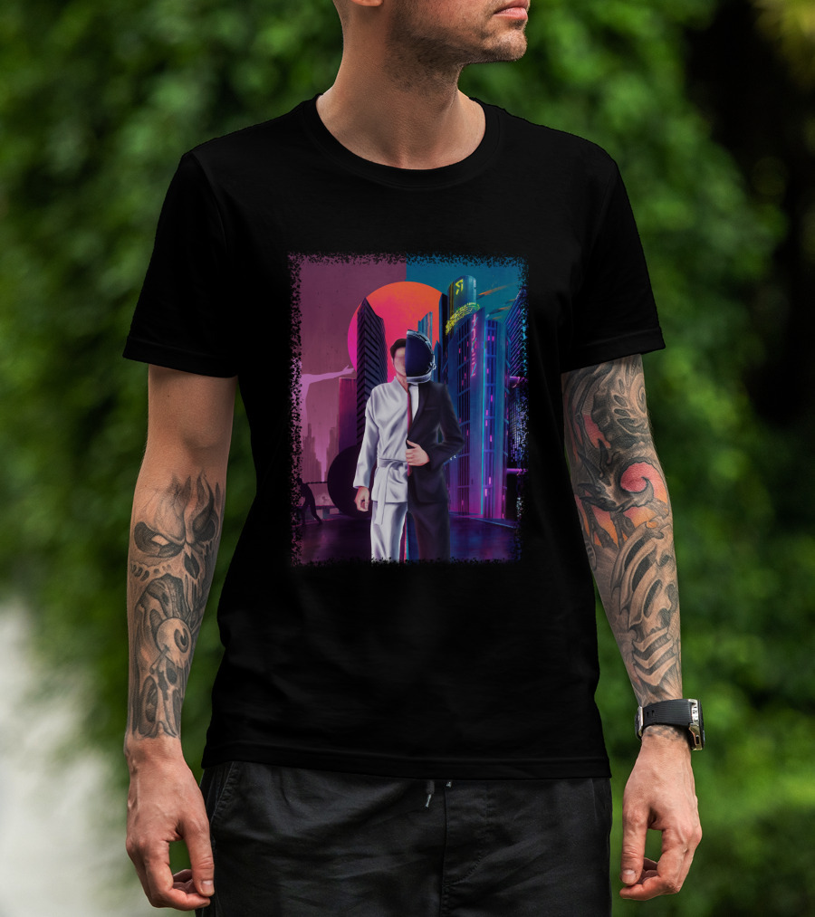 Half Taekwondo Spaceman Futuristic Cityscape Duality T-Shirt
