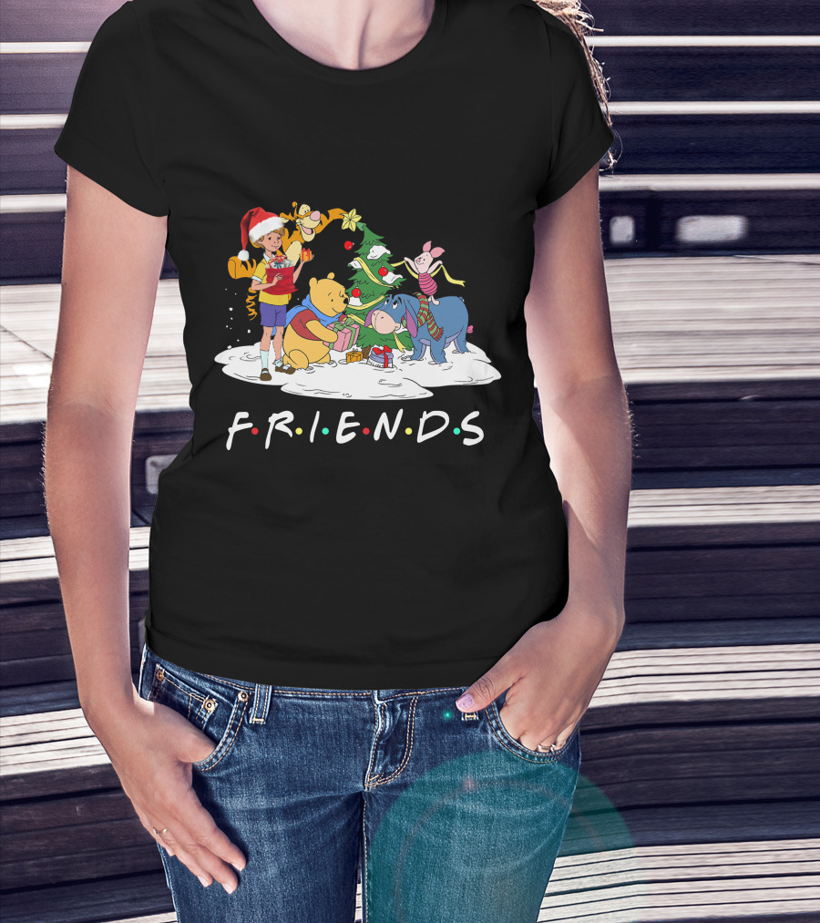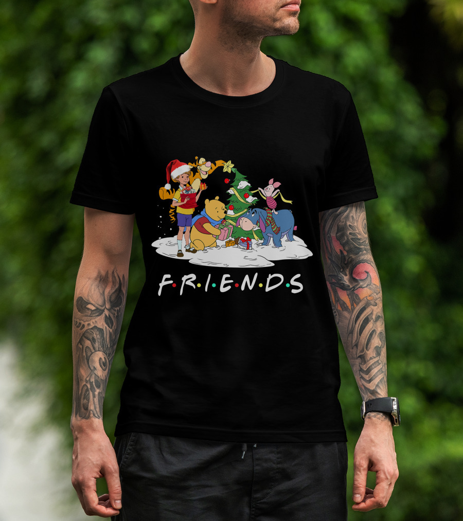 FRIENDS Pooh Tigger Eeyore Piglet Christmas Tree Santa Hat T-Shirt