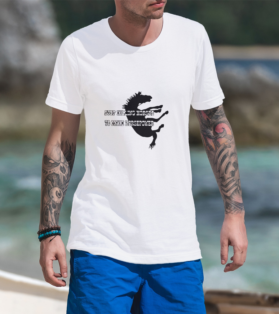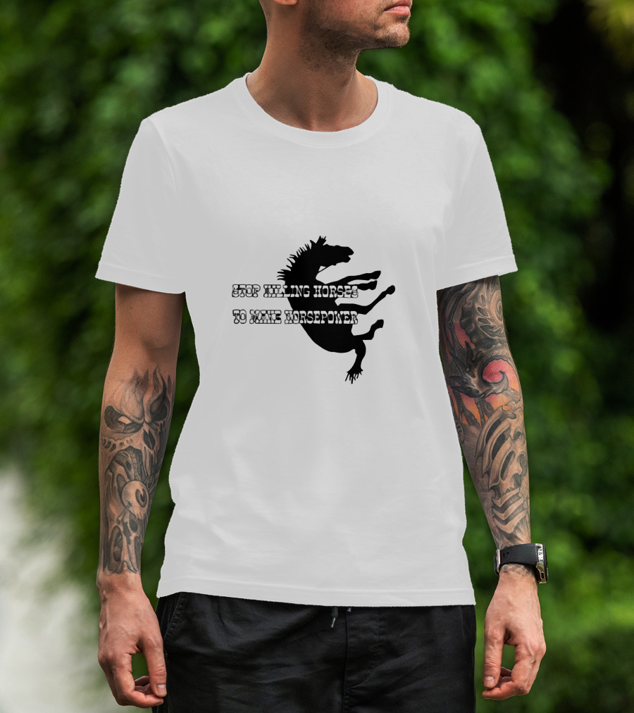 Stop Killing Horses To Make Horsepower Black Silhouette Horse T-Shirt