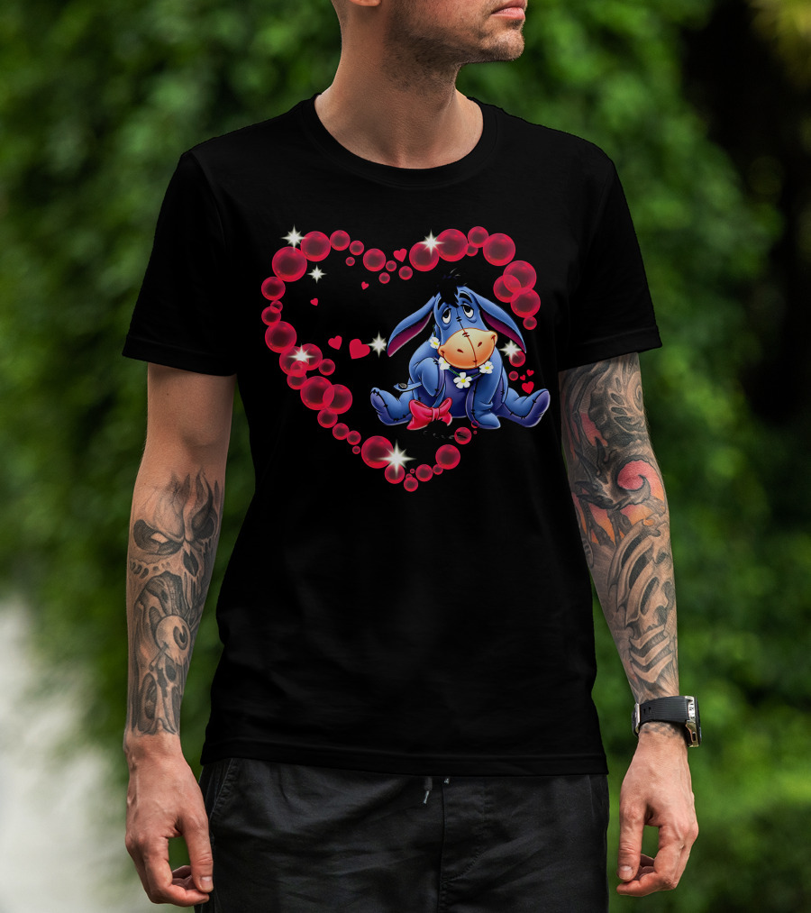 Eeyore Surrounded By Heart-Shaped Bubbles And Flowers T-Shirt