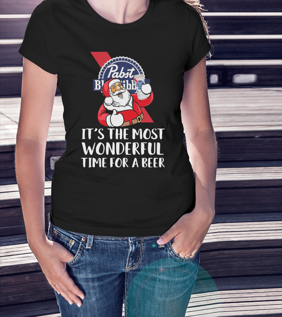Pabst Blue Ribbon Santa It's The Most Wonderful Time For A Beer T-Shirt