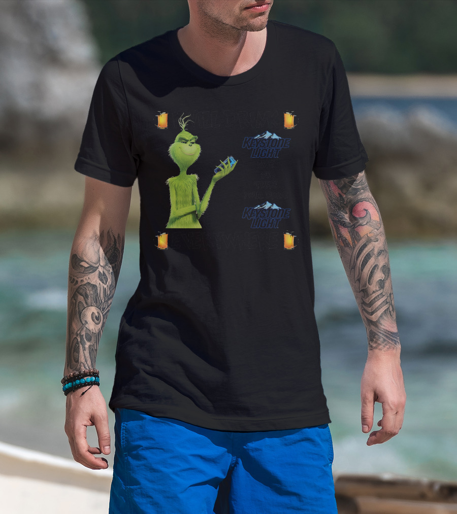 I Will Drink Keystone Light Here Or There I Will Drink Keystone Light Everywhere Grinch T-Shirt