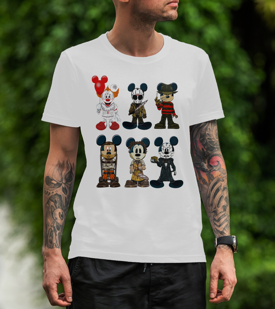 Halloween Horror Characters Mickey Mouse Pennywise Jason Freddy Chucky Leatherface Pinhead T-Shirt
