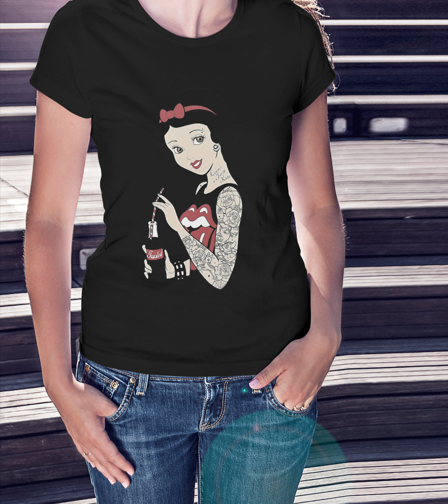 Princess Tattoo Pop Culture Mashup With Rolling Stones And Soda Branding T-Shirt