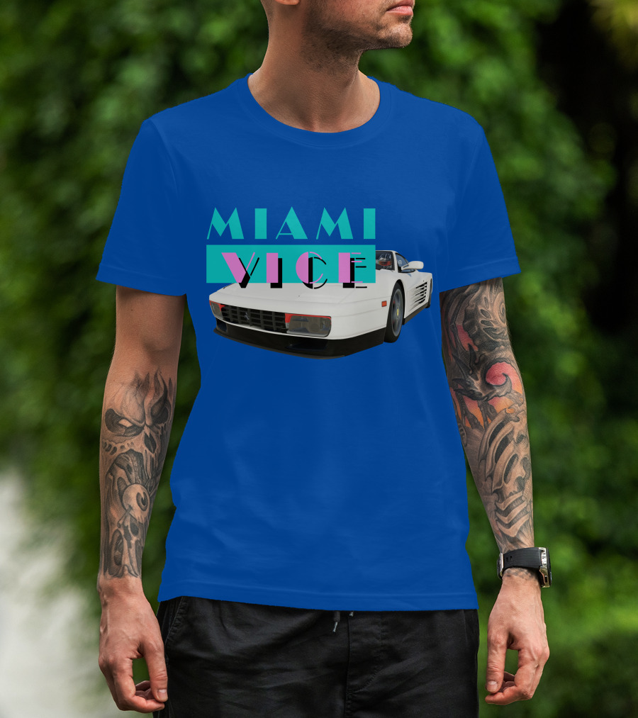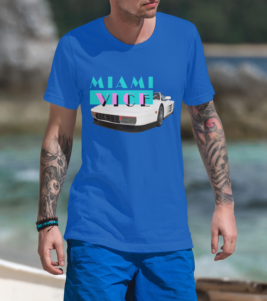 The Miami Vice Retro Car T-shirt is designed for everyday wear and a consistent fit. Fabric is pre-shrunk ring-spun cotton with durable stitching. See the size chart below for exact measurements.