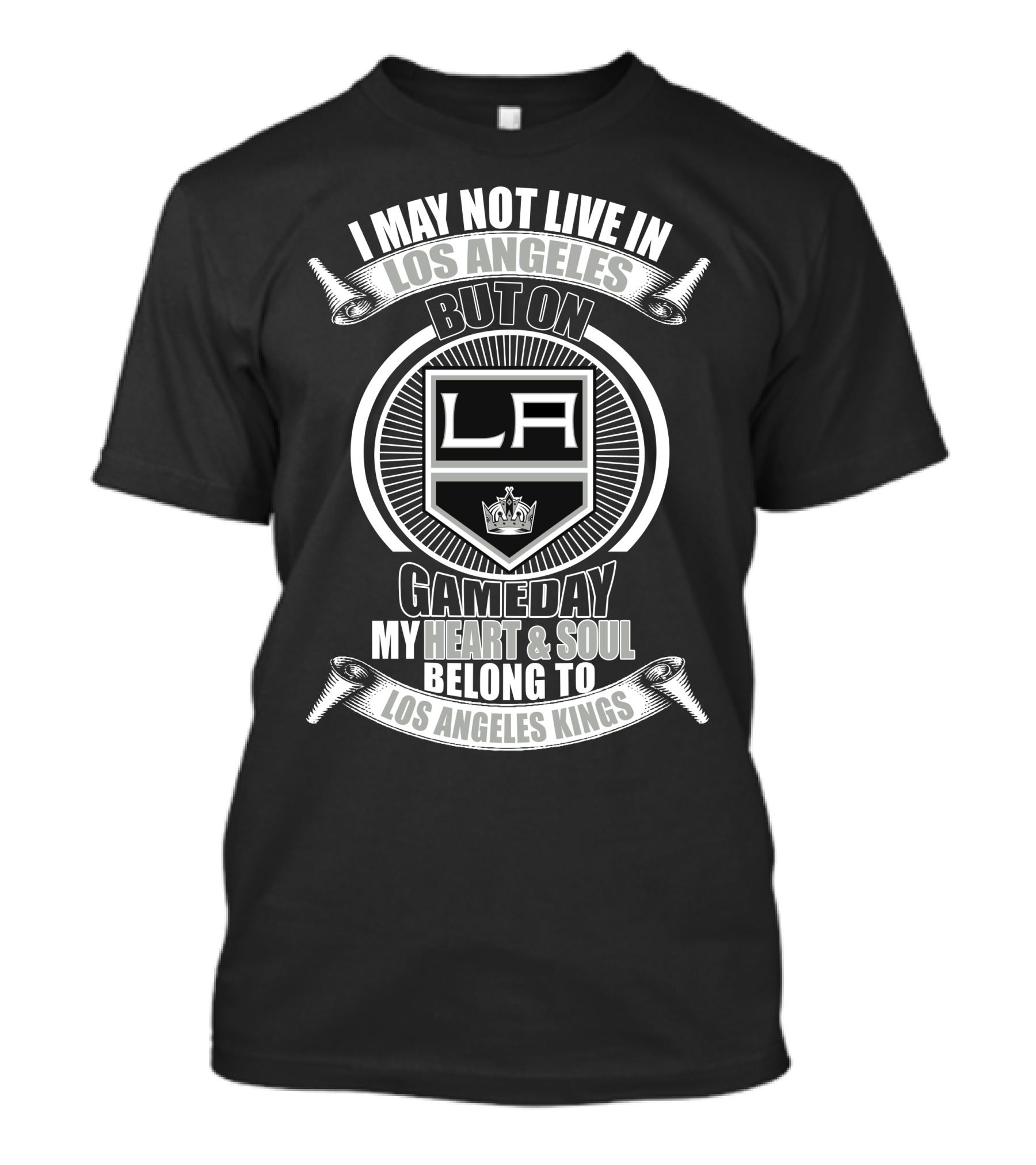 I May Not Live In Los Angeles But On Gameday My Heart And Soul Belong To Los Angeles Kings T-Shirt