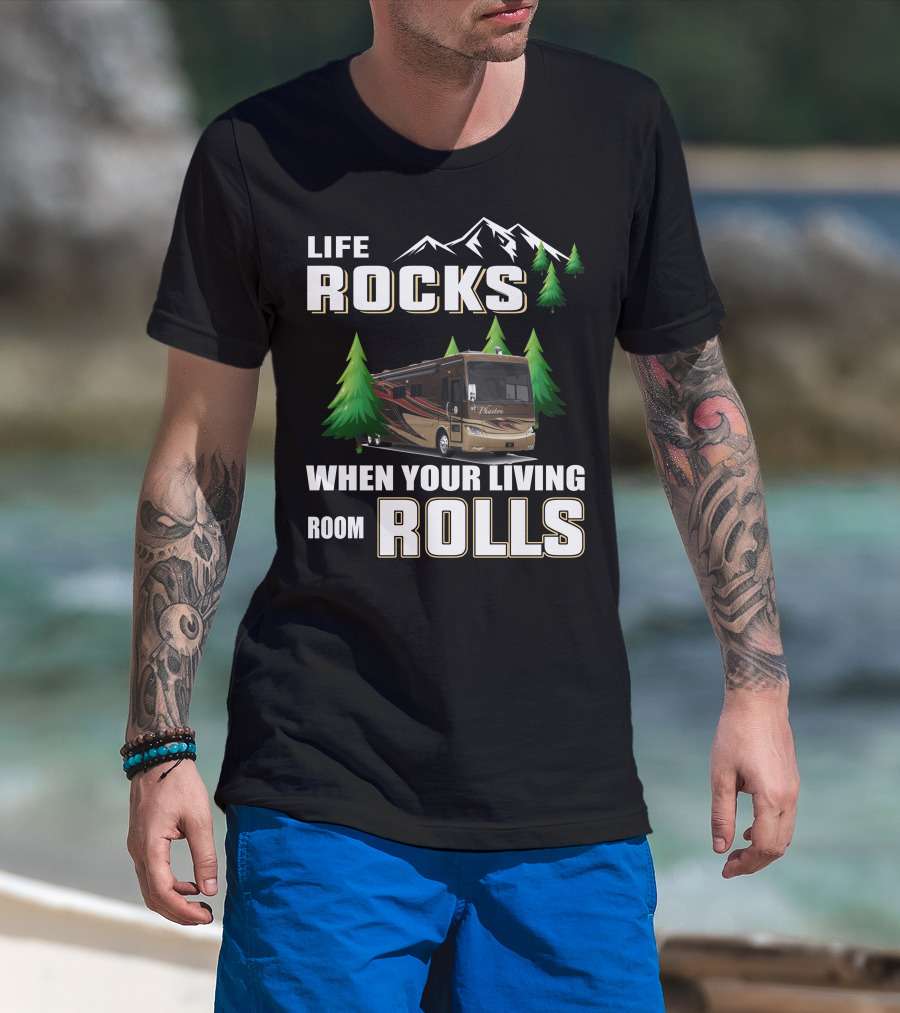 Life Rocks When Your Living Room Rolls Tiffin Phaeton 36GH RV Adventure T-Shirt