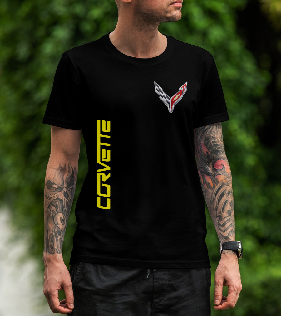The CORVETTE Racing Flag Emblem T-shirt is designed for everyday wear and a consistent fit. Fabric is pre-shrunk ring-spun cotton with durable stitching. See the size chart below for exact measurements.