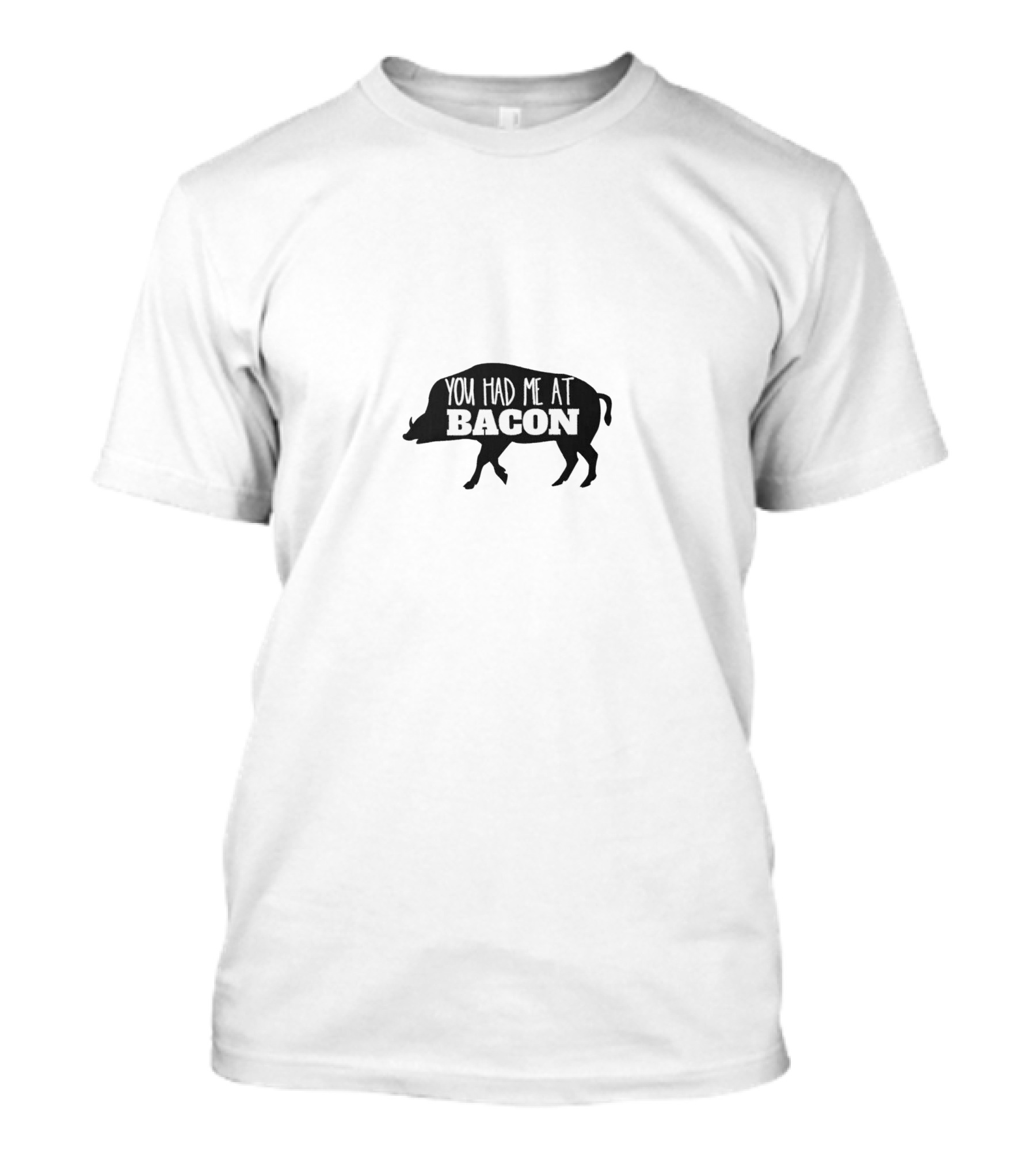 The You Had Me At Bacon Pig T-shirt is designed for everyday wear and a consistent fit. Fabric is pre-shrunk ring-spun cotton with durable stitching. See the size chart below for exact measurements.