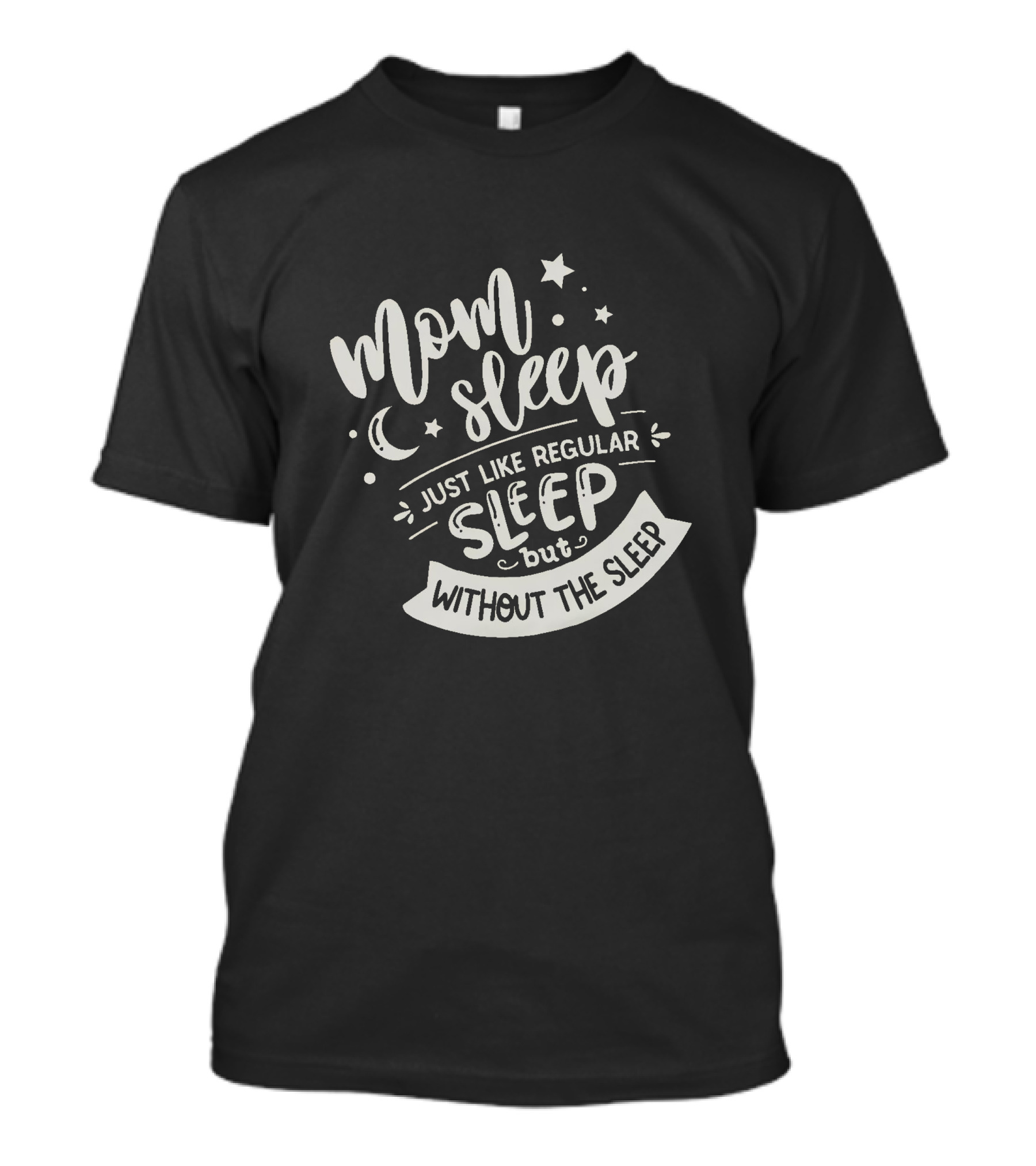 The Mom Sleep Just Like Regular Sleep But Without The Sleep Stars and Moon T-shirt is designed for everyday wear and a consistent fit. Fabric is pre-shrunk ring-spun cotton with durable stitching. See the size chart below for exact measurements.