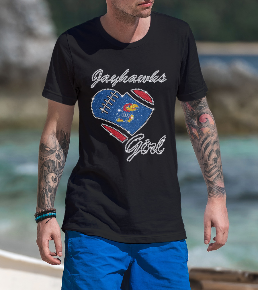 The Jayhawks Girl KU Football Heart T-shirt is designed for everyday wear and a consistent fit. Fabric is pre-shrunk ring-spun cotton with durable stitching. See the size chart below for exact measurements.