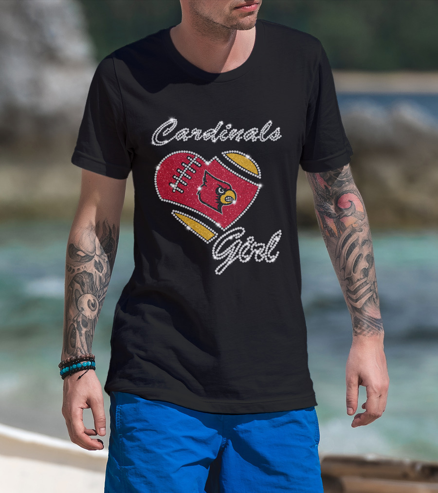 Cardinals Girl Louisville Cardinals Football Heart T-Shirt